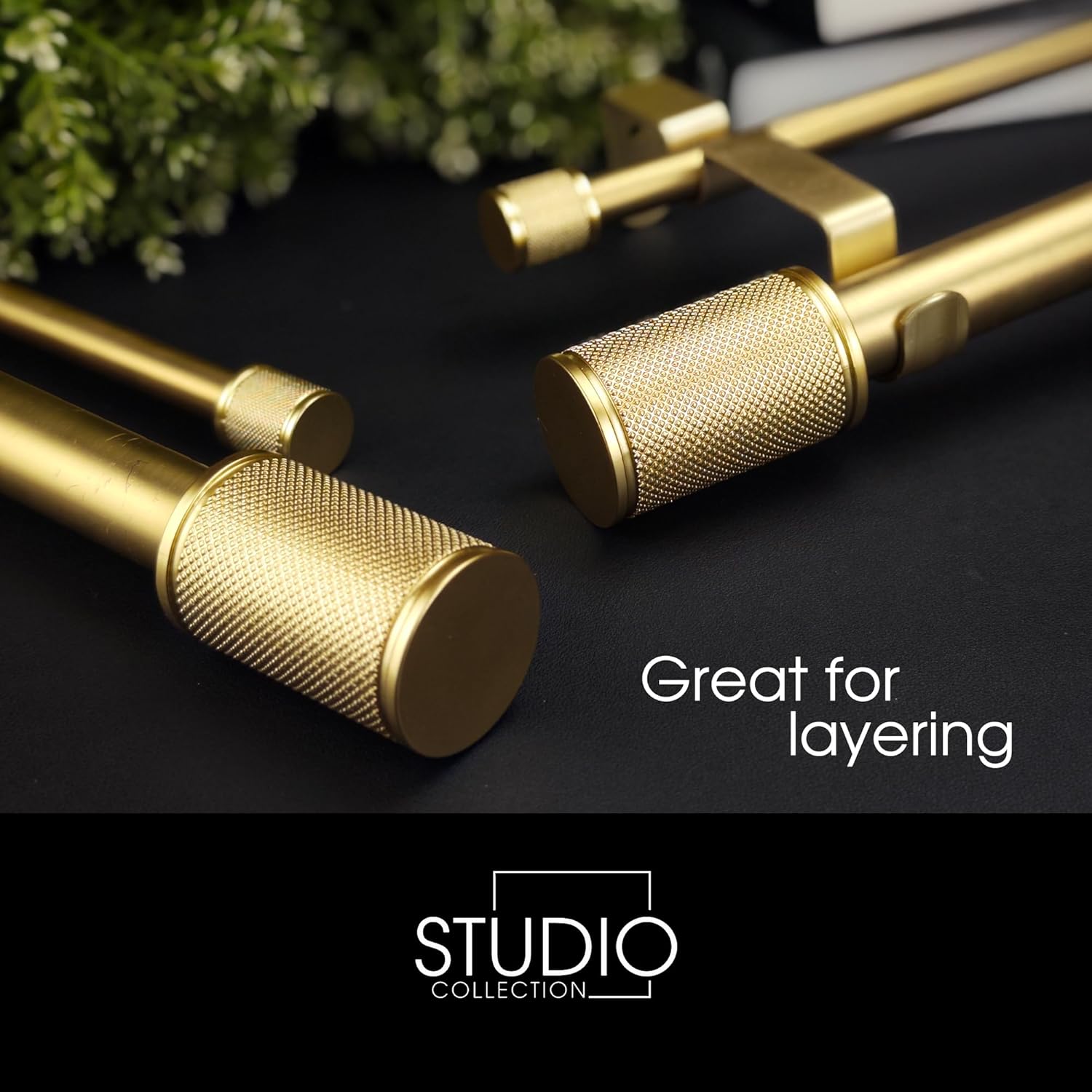 ILAISIHOME 1-1/8 Inch Diameter Gold Curtain Rods with Knurl-look Finial, Telescoping Double Curtain Rods for window, 1 pack