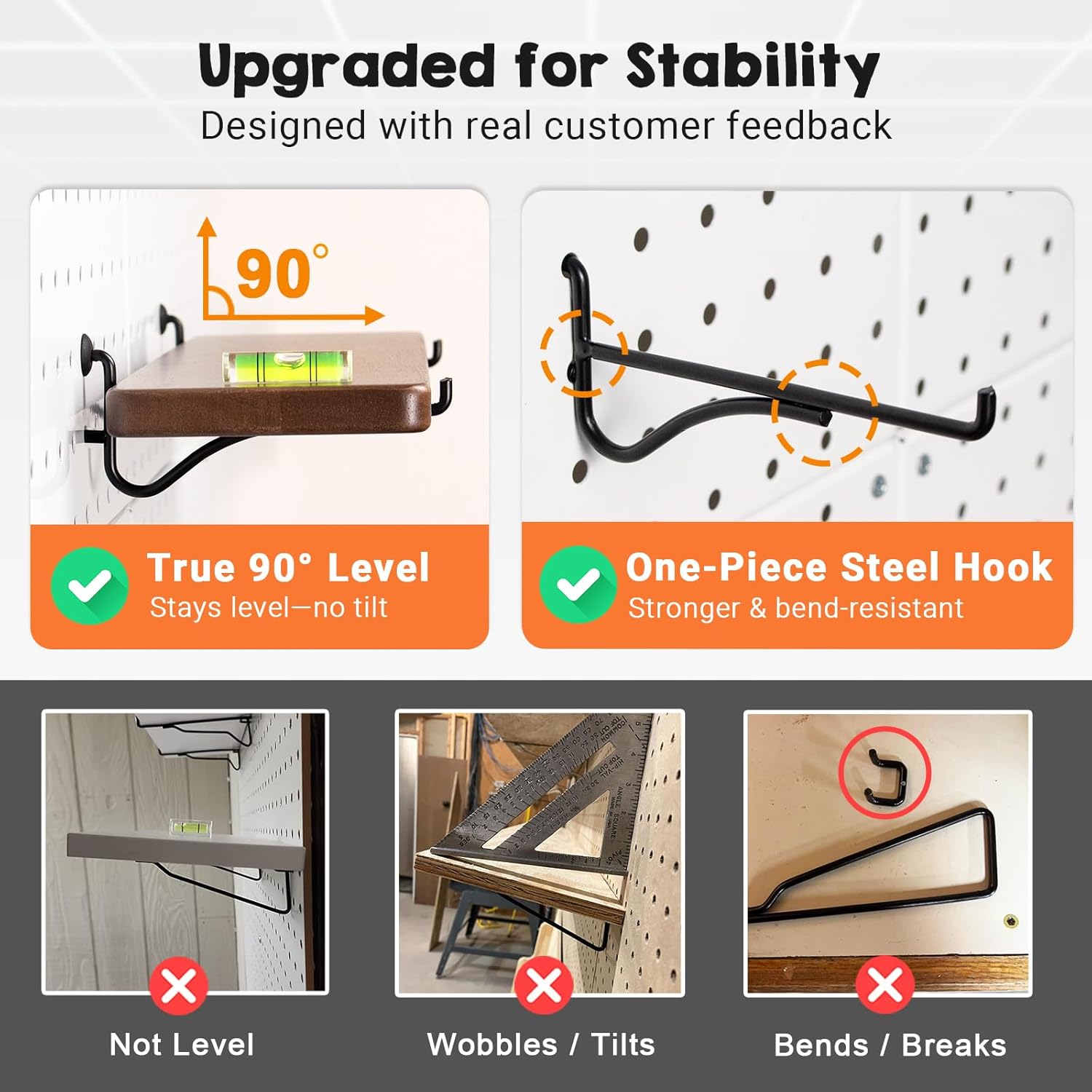 | Additional Features | Premium Rubberwood Pegboard Shelf (Walnut Finish) for 1/4" Metal Pegboard |