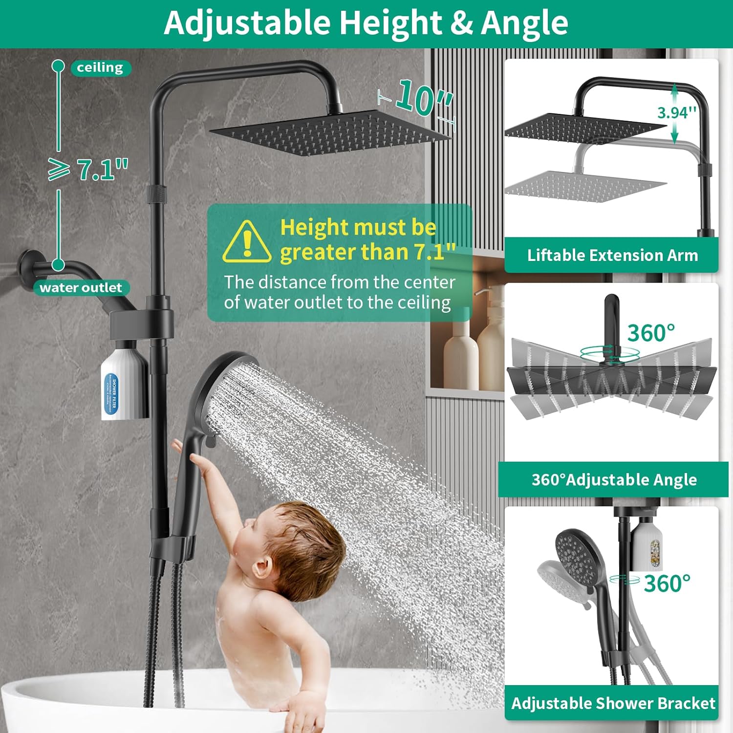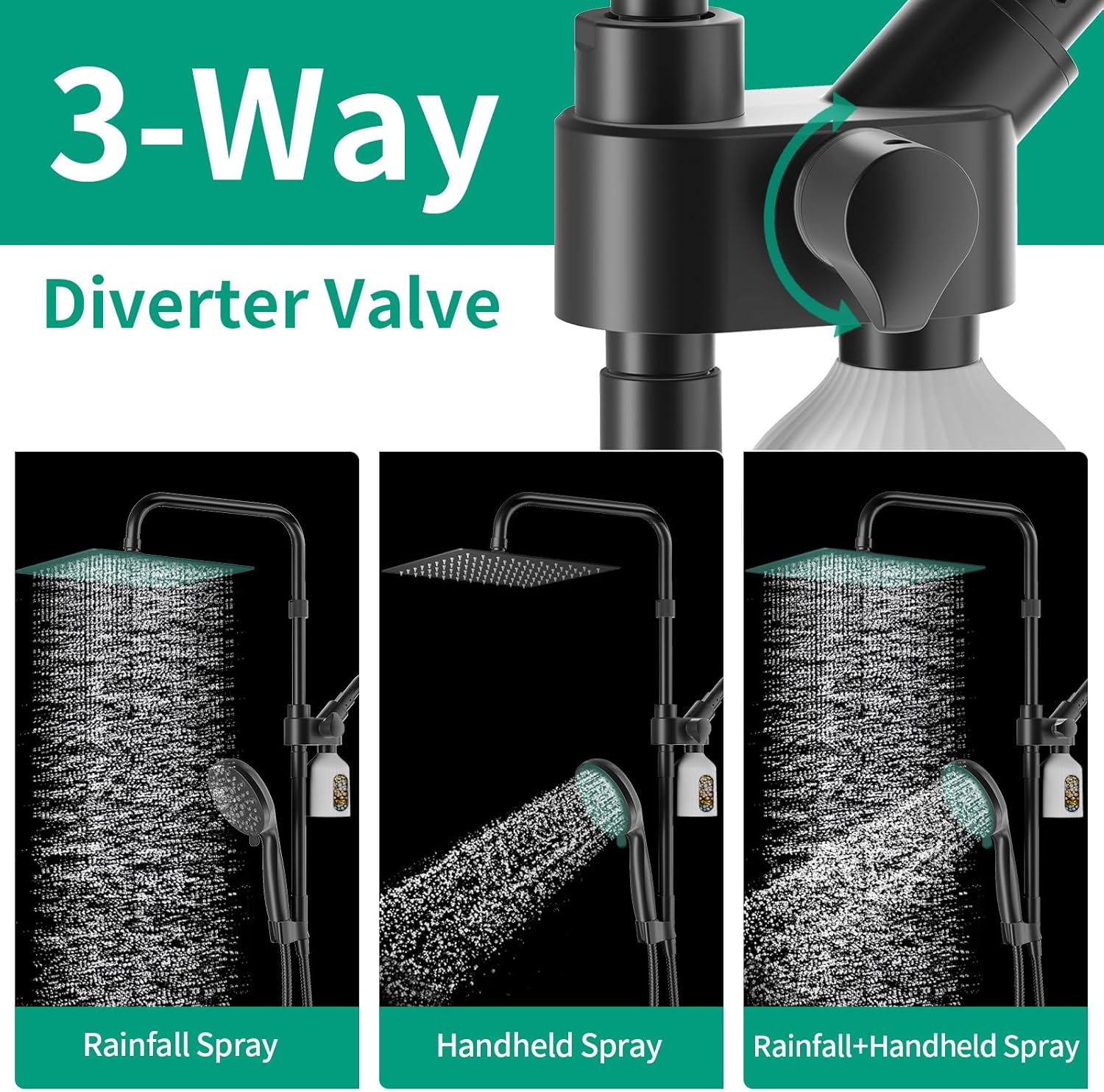 Filtered Dual Shower Head & Shower Head Filters Combo: HEROBAI 10" Filtered Rain Shower Head with Handheld Spray Combo(Black) & HEROBAI 2 Pack Shower Head Filter Refill