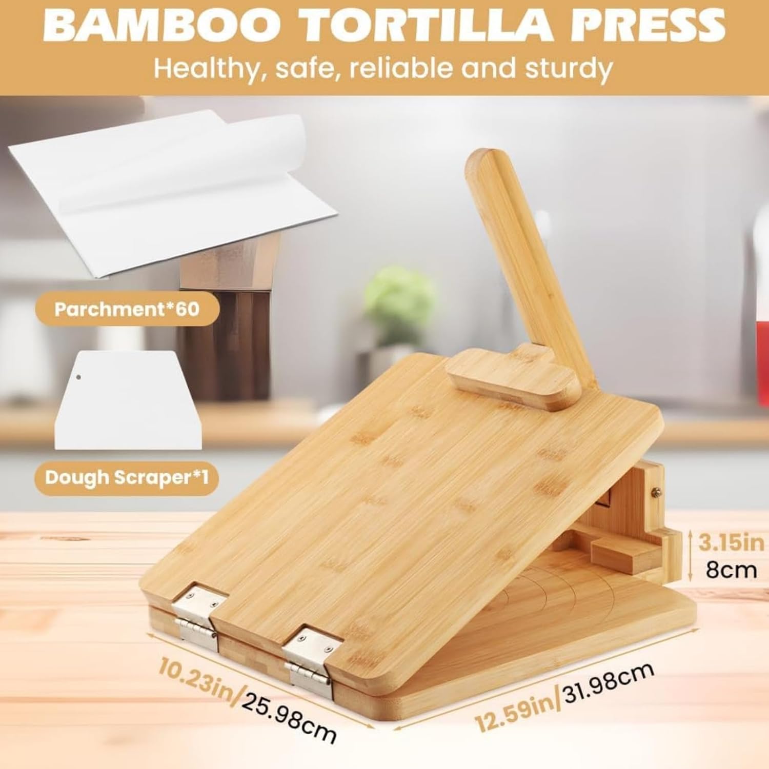 | Included Components | Bamboo Tortilla Press Set |