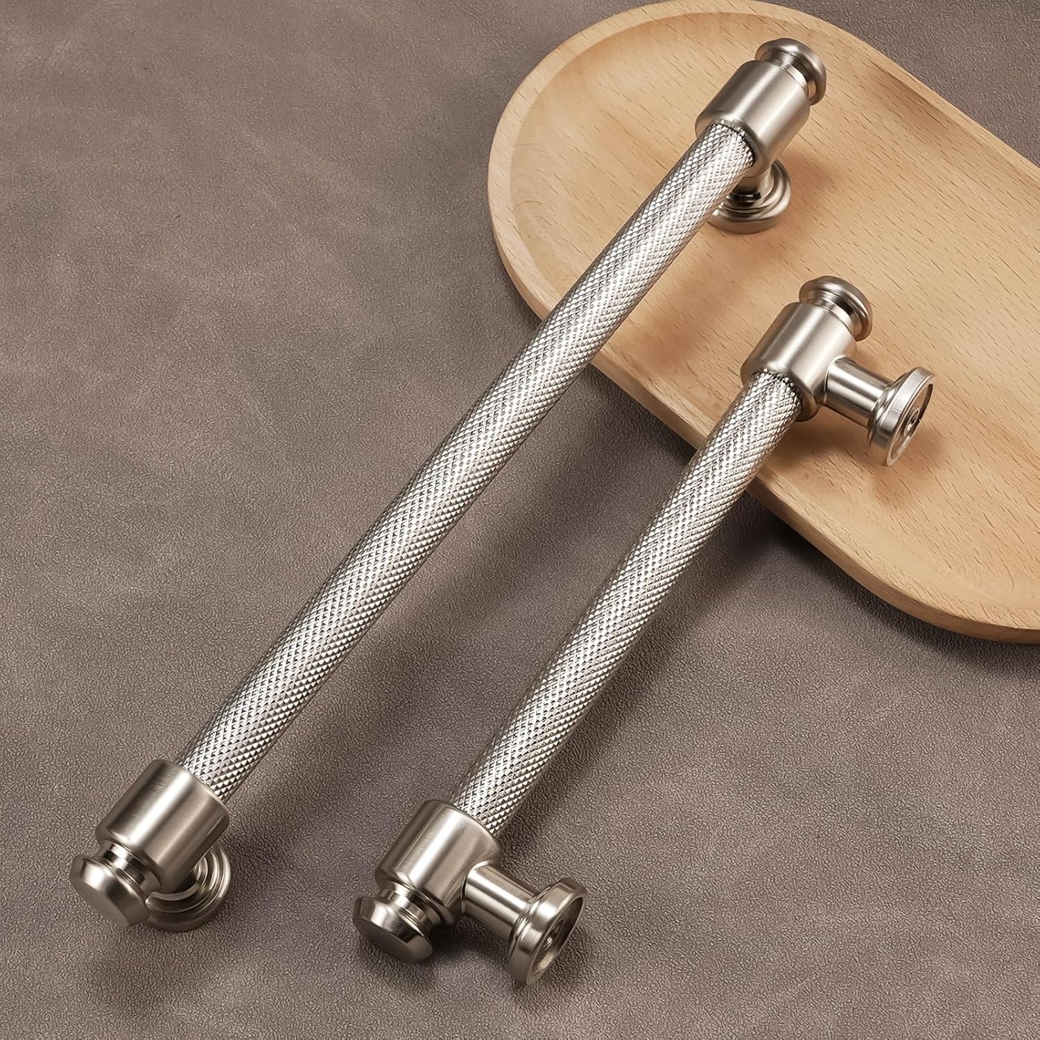 BUKOBYHE 10 Pack 5Inch Kitchen Cabinet Handles Brushed Satin Nickel Knurled Cabinet Pulls Drawer Pulls Kitchen Hardware Kitchen Handles for Cabinets Cupboard Handles Drawer Handles