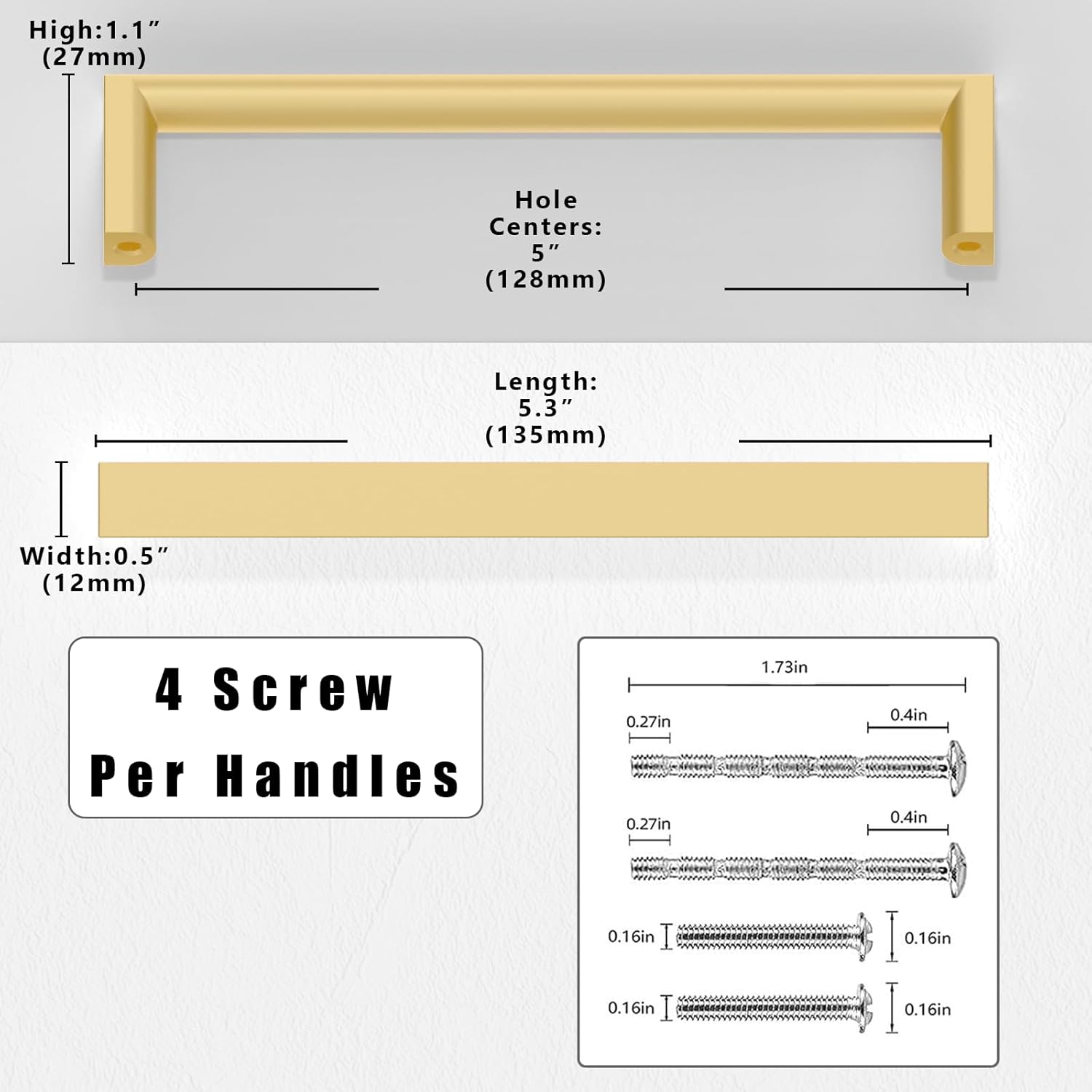Asimerdec 10 Pack Brushed Gold Cabinet Pulls 5 Inch(128mm) Kitchen Cabinet Handles Solid Zinc Alloy Cabinet Hardware Drawer Pulls