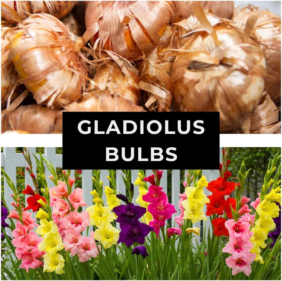 Perennial; Grows up to 48 Inches. Bring vibrant color and vertical elegance to your garden with this 100-bulb mix of large flowering gladiolus. Each bulb produces tall, sword-like stalks with ruffled blooms in a variety of colors, making them ideal for adding height, texture, and visual interest to flower beds, borders, or containers. These gladiolus are easy to grow, thriving in full sun with well-drained soil. Plant in succession every two weeks for continuous blooms throughout the summer. Their strong stems and long-lasting flowers make them perfect for cut flowers in bouquets and arrangements. As a perennial, bulbs can be lifted and stored in cooler climates for year-to-year displays. Perfect for gardeners seeking colorful, reliable, and versatile flowers for both outdoor and indoor enjoyment.