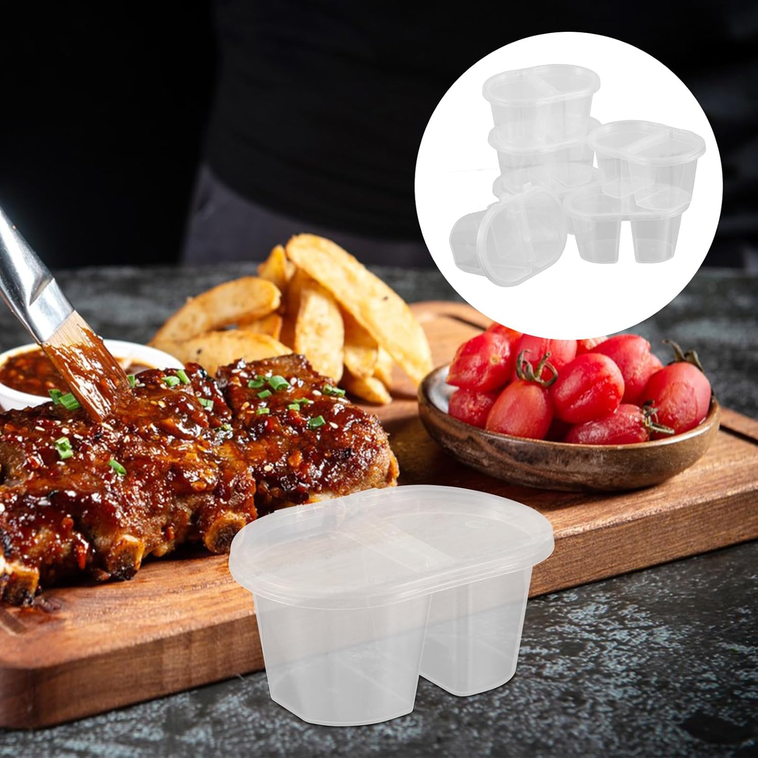 Package Include condiment cups Characteristics -Color:Transparent -Product Info:Double cube sauce cup - compartment: the dual compartments allow you to carry two different sauces, catering to varied taste preferences in one container small plastic containers -Secure lid design: the attached lid that sauces do not spill, keeping your food clean and during transport paper ice cream cups with lids -Effortless cleanup: being disposable, they save you the hassle of washing and cleaning, making meal prep quicker and easier food storage containers with lids -Material:Plastic -Size:8.50X5.50X4.00cm/3.34X2.16X1.57in -Convenient portability: lightweight and disposable, these condiment cups are Suit for enjoying sauces on the go, wherever you are snack containers for adults -Versatile use: suitable for picnics, office lunches, and travel, these cups provide a convenient and versatile solution for carrying condiments disposable food containers with lidsGoods Informationdouble compartment snack containers The clear, secure lids make it easy to transport sauces and condiments without worrying about spills.sauce cups Ideal for catering events and parties, these double-compartment condiment cups are a must-have for any food service professional.paper ice cream cups with lids Use them to serve a variety of dips and dressings, ensuring your guests have a delicious and mess-free dining experience