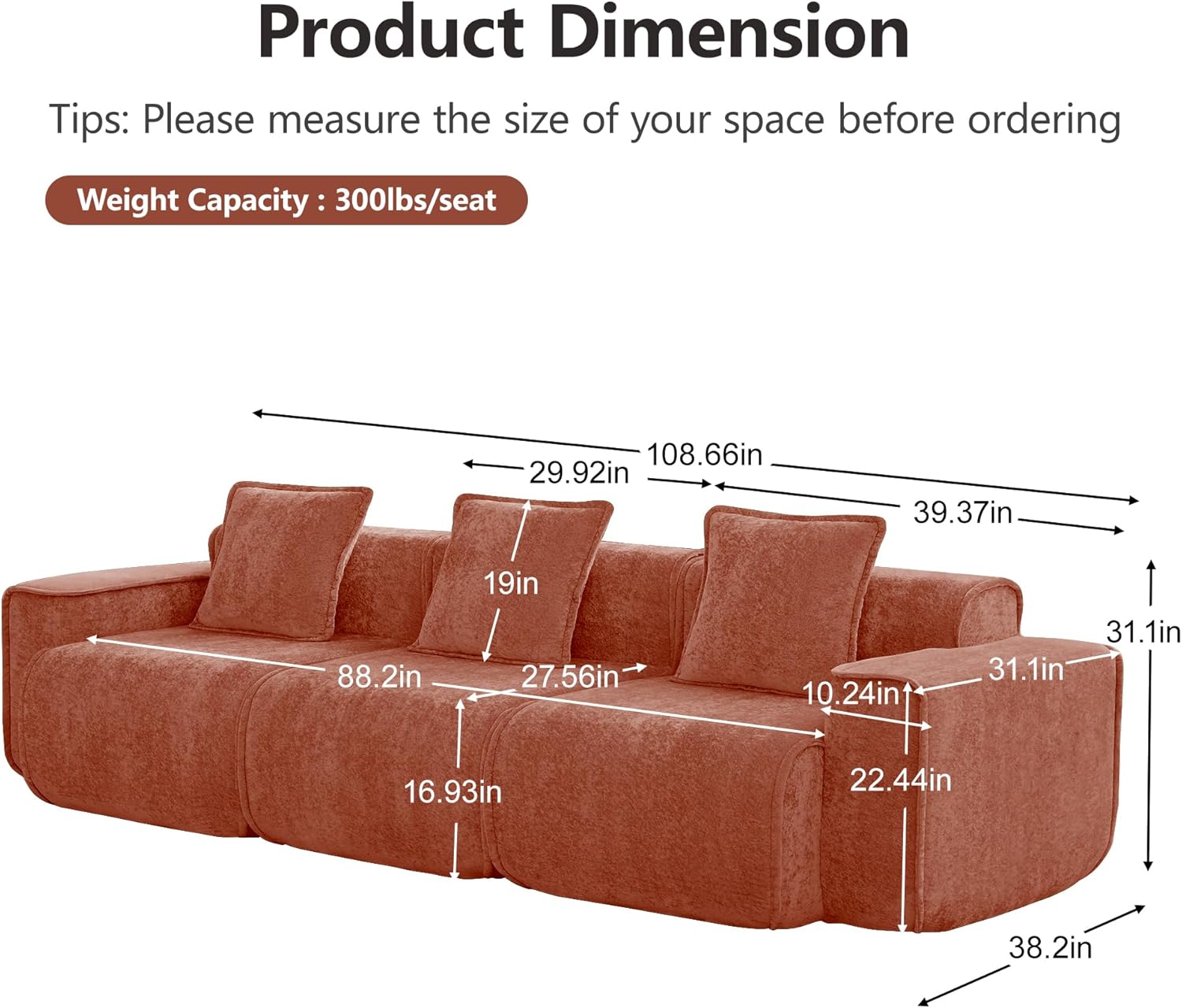 | Item Dimensions D x W x H | 108.6"D x 38.2"W x 31.1"H |