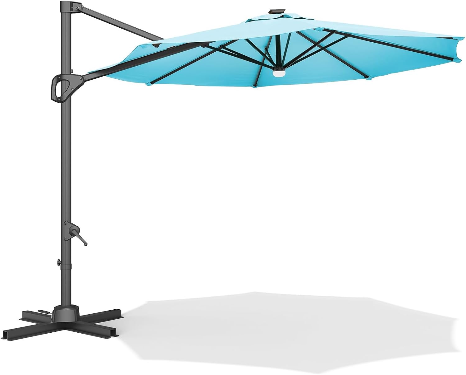 10ft Patio Umbrella Outdoor Heavy Duty Offset Hanging Umbrella 360 Degree Rotation, Easy Tilt Adjustment, Aluminum Frame, Cantilever Hanging Market Umbrella for Backyard Garden Pool DeckThis cantilever umbrella rotates 360° using a foot pedal brake – press to adjust the shade angle, release to lock. Open/close easily with the hand crankThe easy-grip handle slides smoothly and locks at any angle between 0-60° with a trigger releaseBuilt with rust-proof aluminum frame and weather-resistant Oxford fabric canopy. The cross-shaped base stays stable when weighted (100+ lbs recommended – base sold separately)Works anywhere outdoors: patios, pools, gardens, or decks. Always use with the weighted base for safety