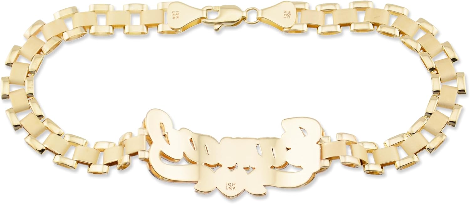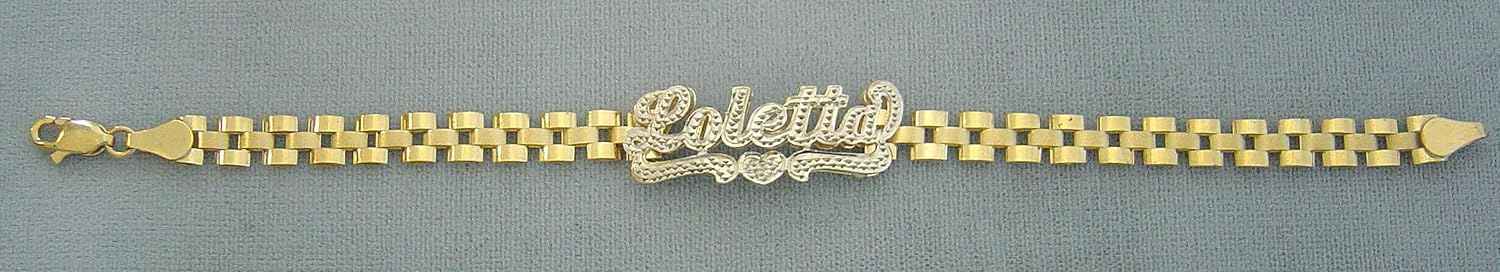 Personalized Name Bracelet 10k Real Gold Customized 2 Tone Fine Jewelry. This luxurious, fully-customizable 10K gold presidential watch band link bracelet or anklet offers the perfect combination of designer style and fine craftsmanship. It is hand caraved with an iced out finished 3D name.