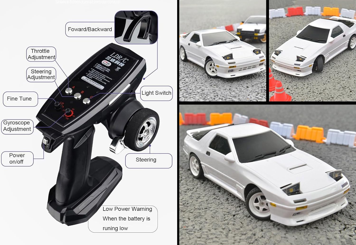 | Additional Features | 1/18 Scale RC Drift Car with Gyro, Drifting RC Car Metal Drive Shaft, Hobby RC Car Proportional Steering Throttle, LDRC Drift Car with Gyroscope, RWD Remote Control Drift Car RTR |