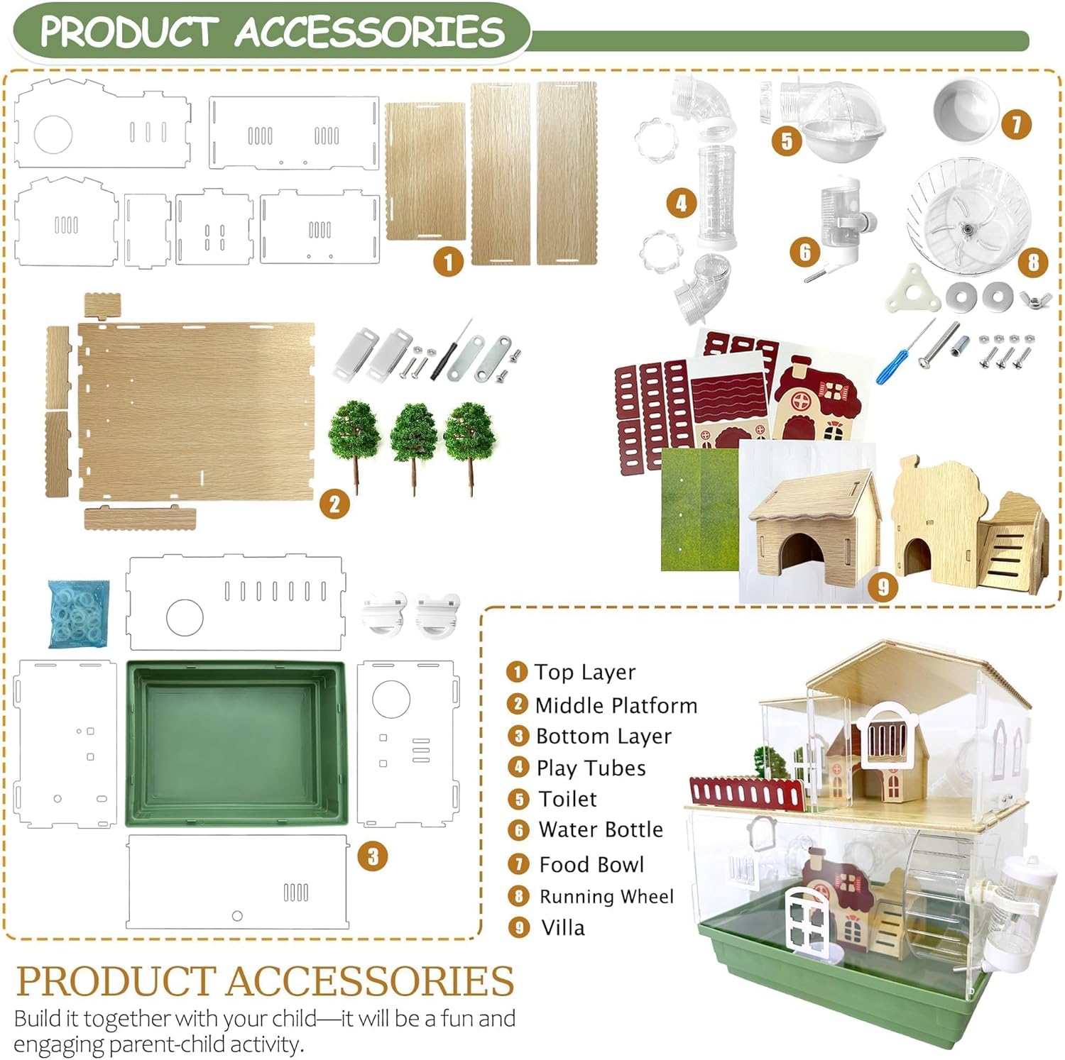 | Additional Features | 360° Transparent View, Easy Assembly, Hamster Accessories, Magnetic Latch, Multi Level |