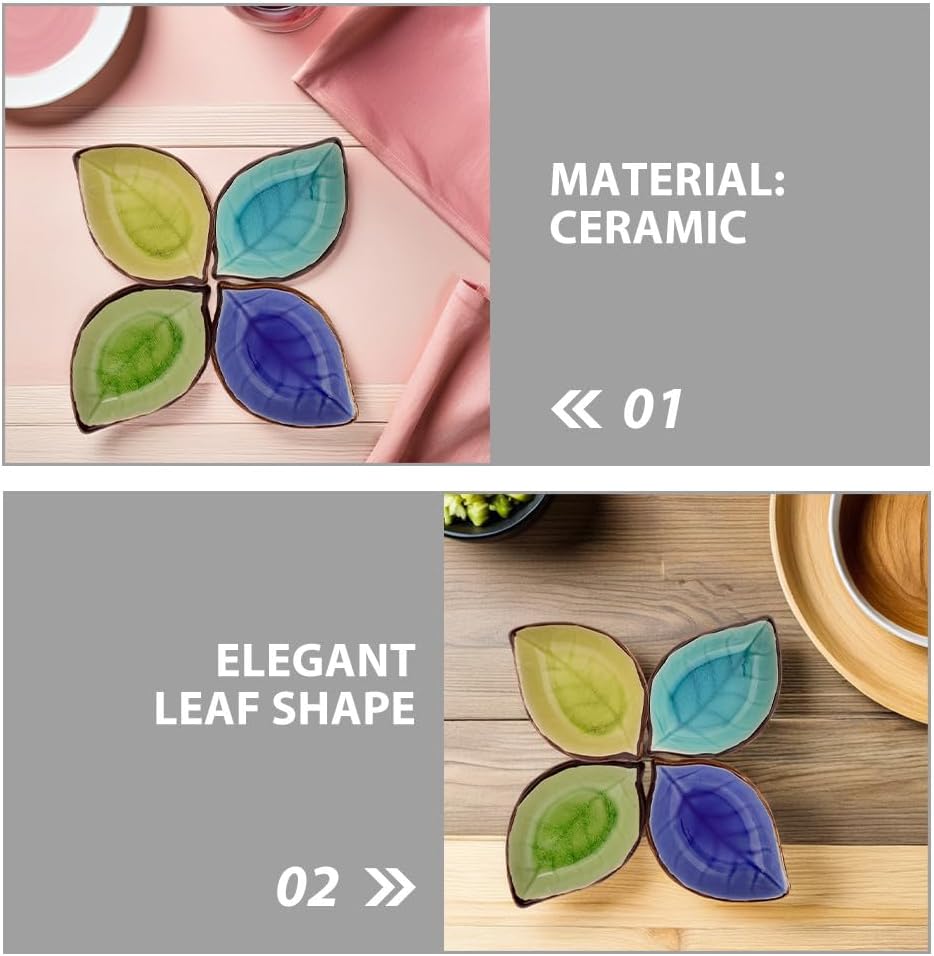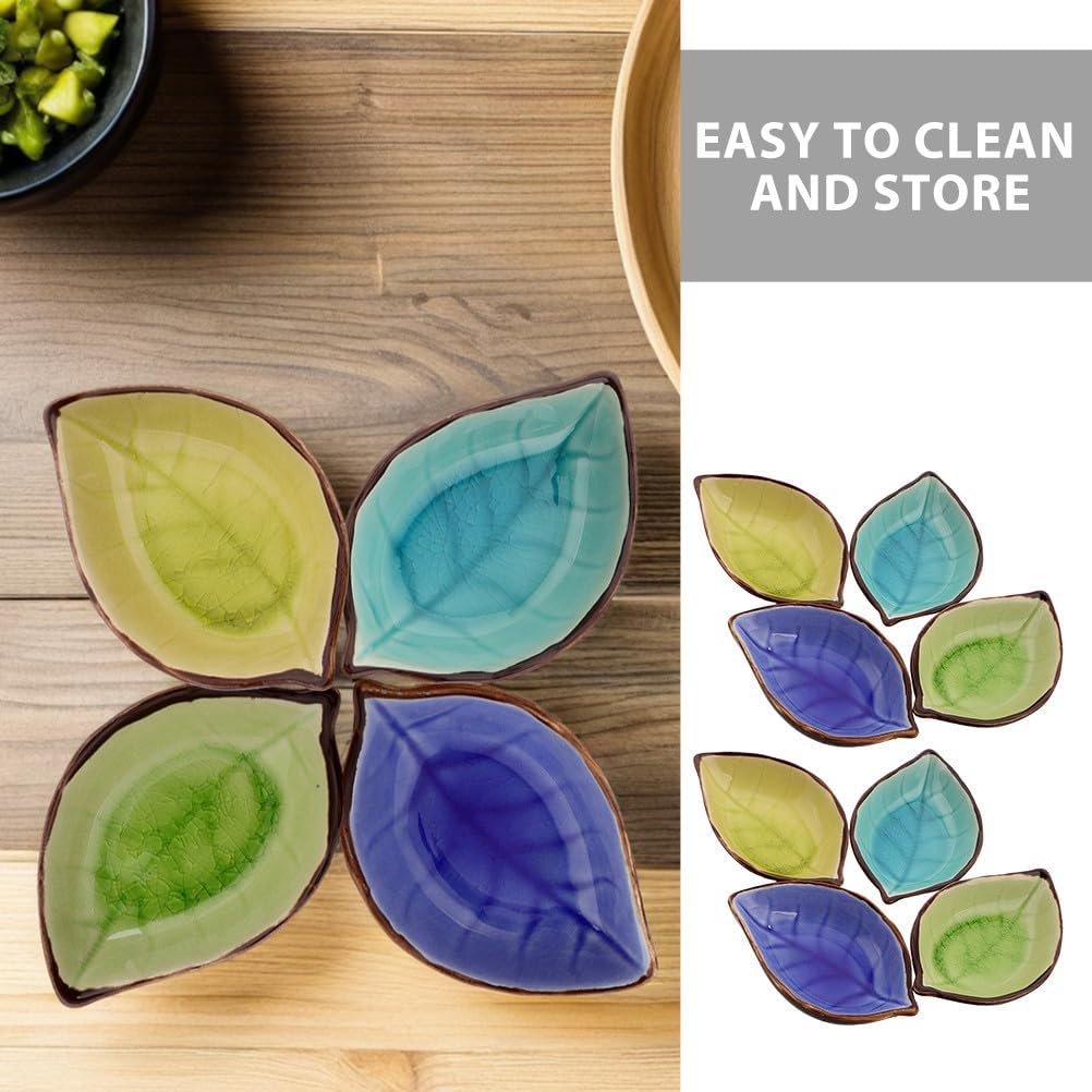 Description Impress your guests with our decorative leaf bowls, ideal for serving sauces, dips, and condiments. These small ceramic plates are designed with a beautiful ice crack glaze, adding a unique touch to your table setting. Ideal for sushi, appetizers, and charcuterie boards, these ceramic sauce cups are both functional and stylish. Enhance your dining experience with these versatile and elegant kitchen seasoning sauce dishes. Features -Color:Assorted Color -Material:Ceramic -Size:11.00X7.00X3.00cm/4.32X2.75X1.18in -Charming leaf shape design: these leafshaped serving bowls bring a natural and elegant aesthetic to your table, ideal for appetizers, sauces, or condiments -Multifunctional use: these ceramic condiment dishes are ideal for serving soy sauce, dipping sauces, or small snacks, making them versatile for any meal or gathering - and reliable: crafted from hardwearing porcelain, these small ceramic bowls are built to last, ensuring they remain a staple in your kitchen for years -Spacesaving design: these mini ceramic plates are stackable and compact, making them easy to store while maximizing your kitchen space -Easy to clean: the smooth surface of these ceramic dipping bowls keeps quick and convenient cleaning, ideal for busy households or entertaining guests