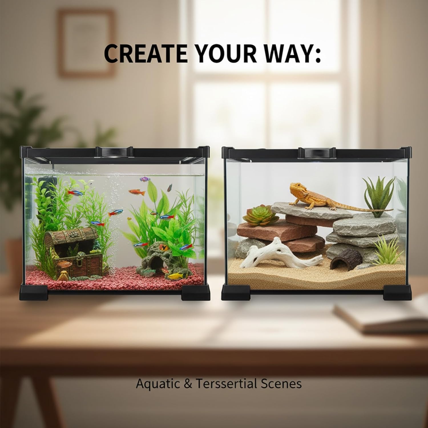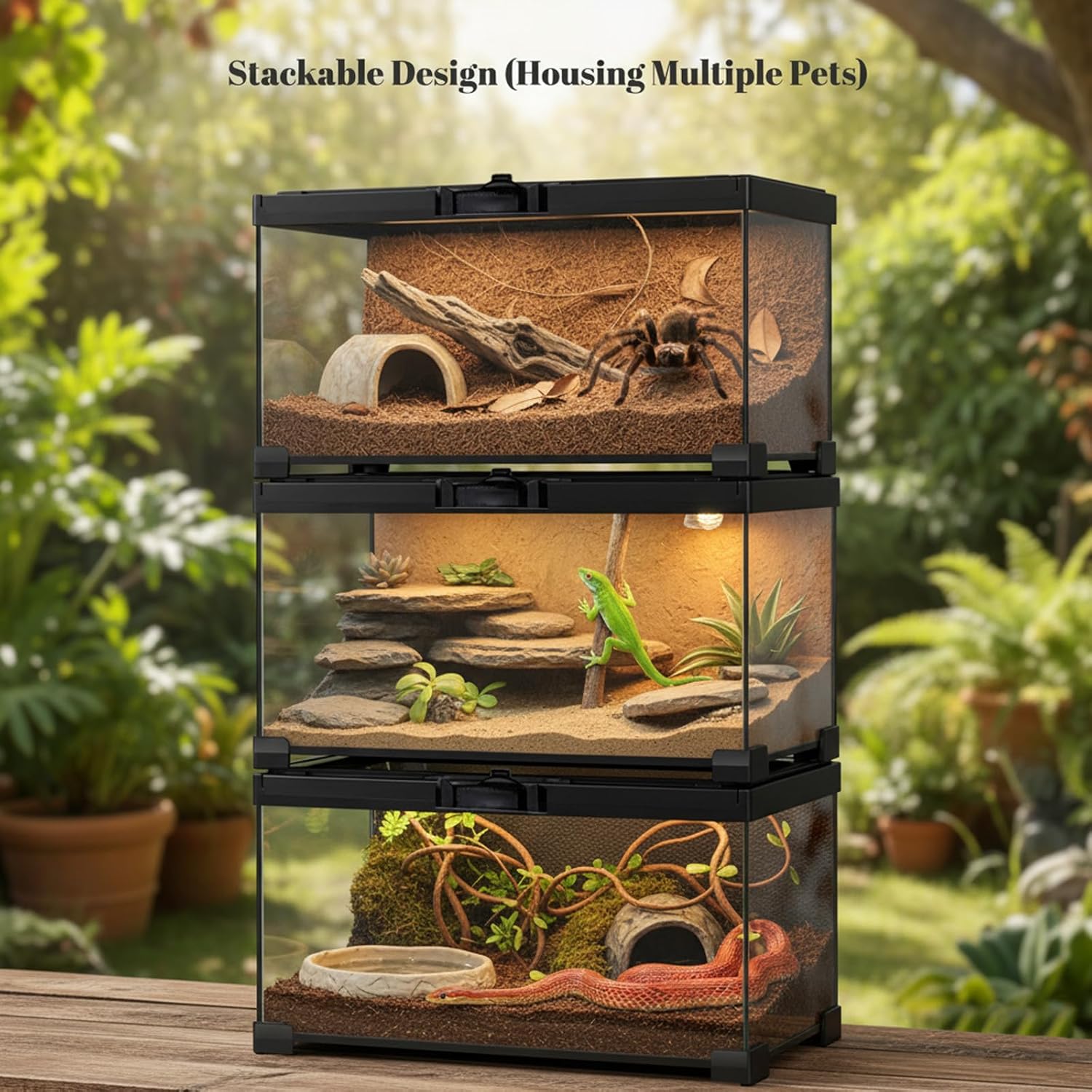 | Included Components | 1 reptile tank for small amphibians and reptiles, 3 resin hideout, 1 food water bowl, 1 spray bottle and 1 stainless steel tweezers |