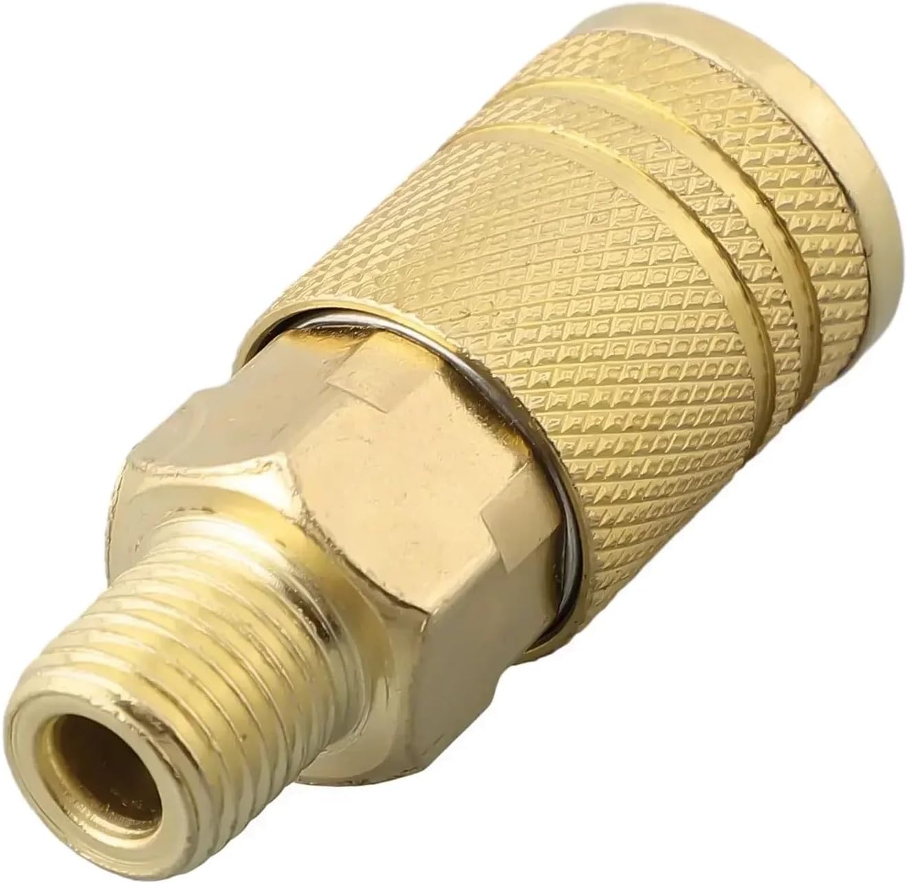 Push-to-Connect FittingsFeatures:*Pneumatic Fitting US Standard Type Quick Coupling Connector Coupler For Air Compressor 1/4NPT thread.*Made of iron, with copper-plated , rust-proof and beautiful.Specifications:Product Name: Pneumatic FittingMaterial: irontreatment: copper platedColor: GoldThread Size: 1/4NPT (12.5mm)Size: (Approx. ) 53mm*23mm/2''*0.9''Optional Type: Male Thread, Female ThreadSuitable for: Air CompressorQuantity: 1pcPackage Content:1 × Pneumatic FittingNote:1.Transition: 1cm=10mm=0.39inch.2. The real color of the item may be slightly different from the pictures shown on website caused by many factors such as brightness of your monitor and light brightness.3. Please allow slight manual measurement deviation for the data.==========Hign-concerned Chemical : NoneType : FittingsModel Number : Pneumatic Fitting