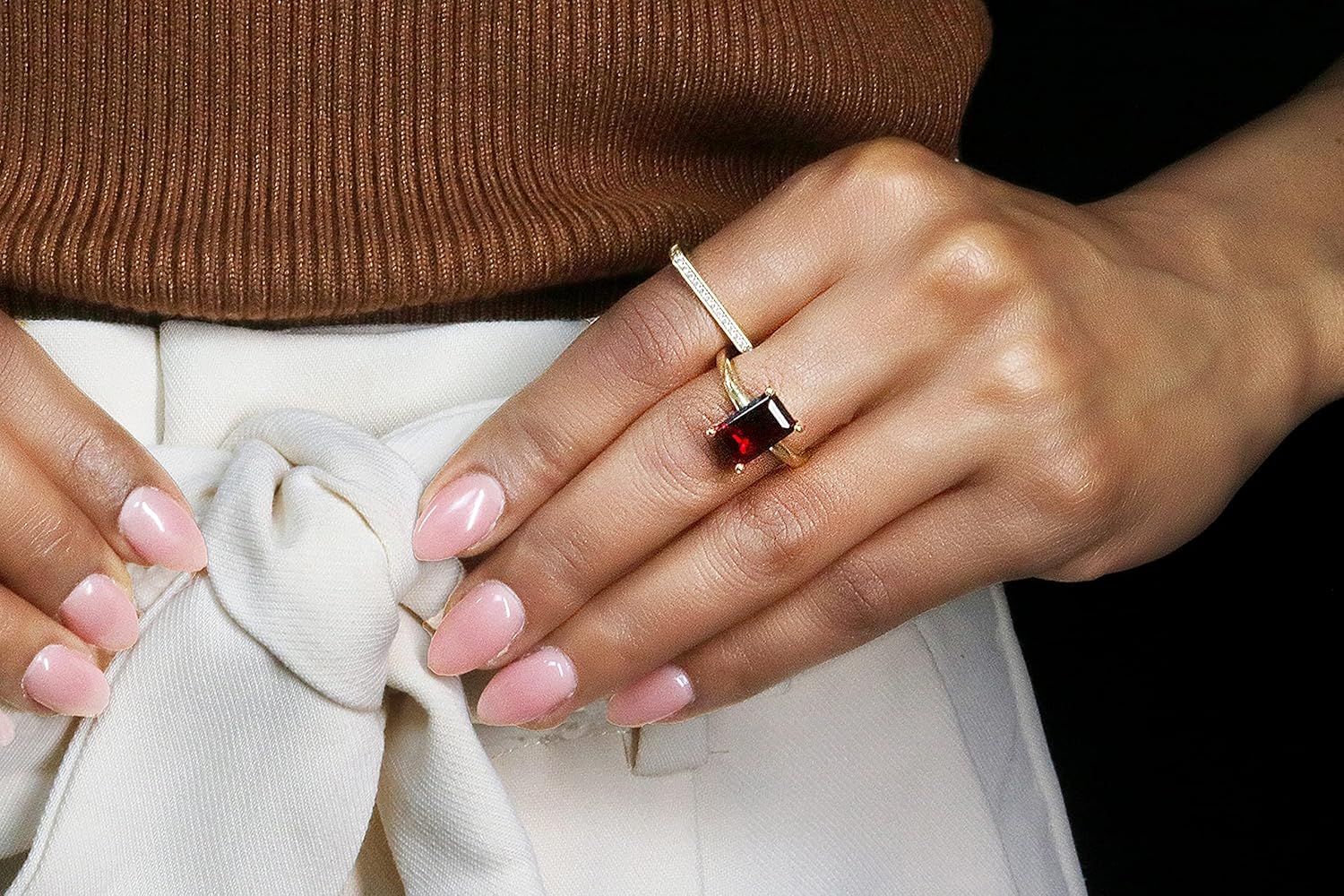 A deep red-colored January birthstone jewelry, this Garnet ring fashioned in 14k gold-filled band exudes beauty and subtle dash. Perfect for every event or daily wear, this red jewelry is very easy to style and can go with either a formal or a casual outfit.