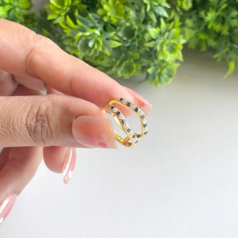 This Ring Crafted in 925 Sterling Silver, available in 14K White, Yellow and Rose Gold Plating. Round Cut simulated Blue Sapphire & White Diamond set in prong setting