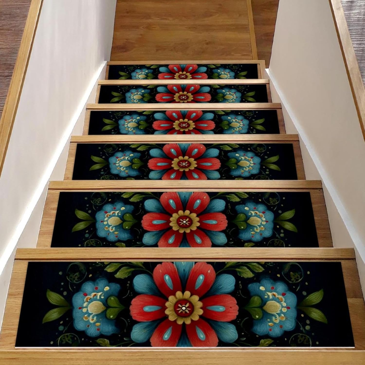 ・Size: 30 x 8 in / 76 x 20 cm, 5 mm thickness. ・Material: The polyester surface absorbs water, preventing stains on the floor. The TPE back is non-slip and water-resistant, preventing damage to the stairs. ・Package Contains: 15 pieces of 30x8in (about 76x20cm) stair mats, 5mm thick. Suitable for most needs. Each stairway treads rugs is individually wrapped. ・Easy to Clean: Vacuum, hand wash or machine wash. The stair runners for wooden steps can be machine washed, preferably hand washed, or vacuumed. Do not use bleach or tumble dry at high temperatures, drying at appropriate low temperatures will give you a comfortable texture. ・Noise Reduction of Stair Treads: By adding our stair runner, not only can you protect your floors, but you can also significantly diminish the noise caused by walking up and down the stairs. Stair rugs can decorate your stairs, create a warm home atmosphere, you can enjoy a peaceful and quiet home environment without disturbances. ・Easy to Remove Adhesive Backing: When you want to replace the stair treads non slip, the adhesive backing easily removes without leaving residue on the steps. ・Holiday Design: Stair carpet treads are designed specifically for Christmas,Halloween, Thanksgiving Day features classic festival elements and vivid printing styles,creating beautiful and stunning visual effects for you. This holiday themed stair treads can easily help you add a strong festive atmosphere, bringing charming and exquisite holiday decorations.