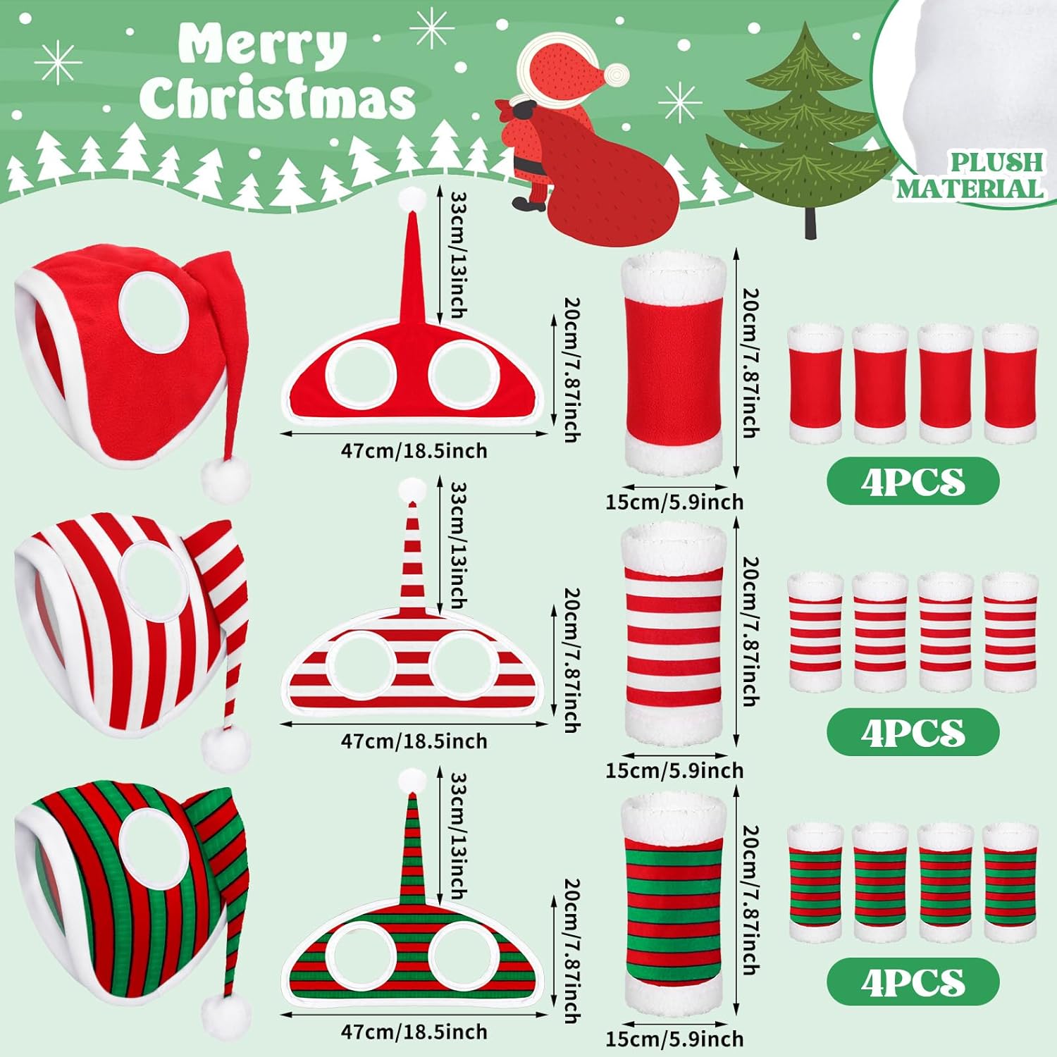 Features: For those family members or friends who have horses at home, our Christmas horse ornament costume could be the ideal gift. It will make their holiday season even more memorable. Lastly, our horse Christmas costumes are designed for easy wearing, storage, and cleaning. The ear bonnet for horses and leg wraps are simple to put on and take off. After celebrations, cleaning up is a breeze, and so is storing for the next holiday season. Specifications: Material: plush Color: red, white, green Size: Horse hat: about 13.78 inches/ 35 cm Horse leg wraps: about 7.87 x 12.99 inches/ 20 x 33 cm Package includes: 3 x Christmas horse hats 12 x Christmas horse leg wraps Notes: Manual measurement, please allow slight errors on size. The color may exist a slight difference due to different screen displays. Please understand that horse in the picture is not included. Before purchase, confirm whether the product size is suitable for your pet, and observe the pet's reaction when using. Please remove the product in time if there is any discomfort.