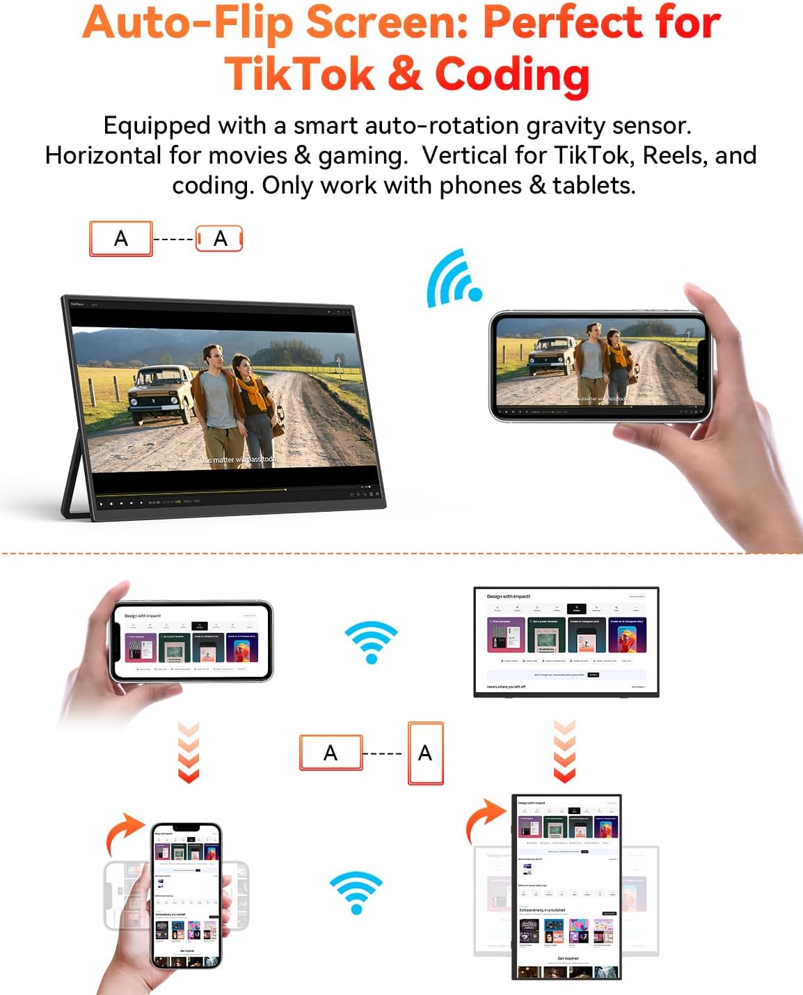 | BuiltIn Media | 1 x 15.6'' Wireless Portable Monitor, 1 x Mini-HDMI to HDMI Cable, 1 x Power Adapter, 1 x Sleeve Bag, 2 x USB-C to USB-C Cable |