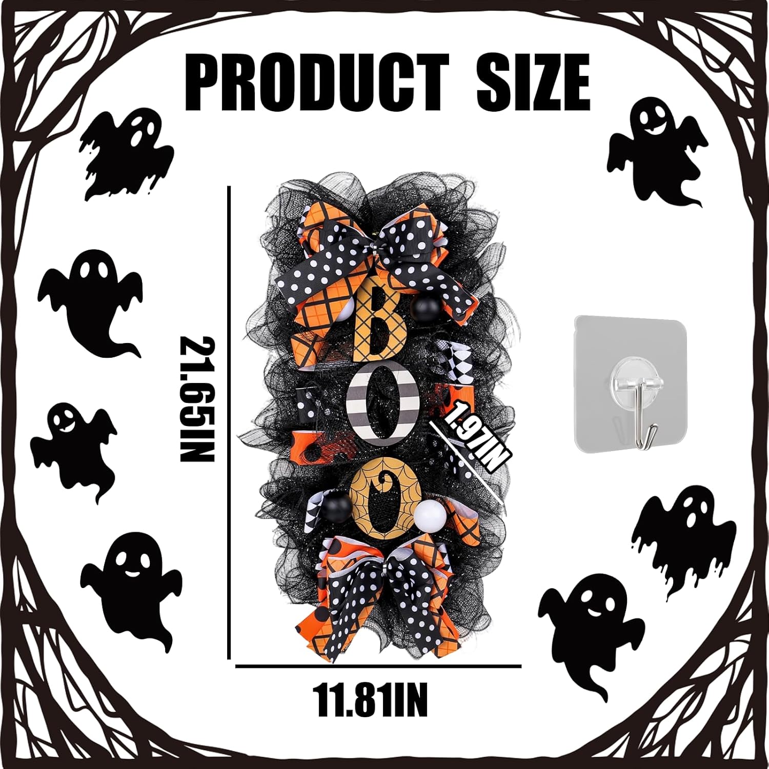 Features: Eye Catching Design: The wreath combines a cute - spooky ghost doll, checkered burlap, and shimmering meshes. The ghost sign and contrasting textures create a striking look, perfect for grabbing attention at Halloween parties, instantly elevating decor appeal. Wide Application: Suitable for indoor doors and mantels, and outdoor porches, fences use. Beyond parties, it works for haunted - house setups, themed photo shoots, adding a spooky, cohesive touch to diverse creative Halloween projects. Specifications: Material: Cloth Theme: Halloween Color: As the picture shows Size: As the picture shows Count: 1 Pcs Notes: The color may exist a slight difference due to different screen displays.