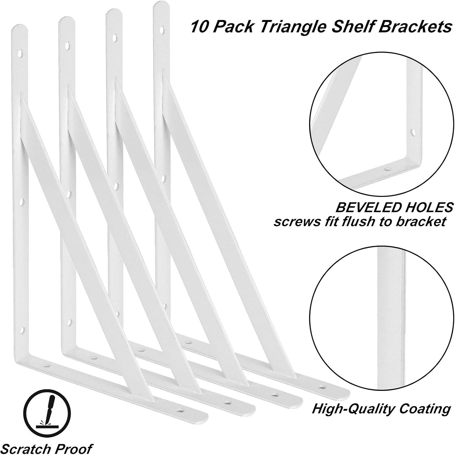 16 PACK 11.8” x 7.5" DIY L Brackets Wall Angel Corner Brace Heavy Duty Steel Floating Shelf Bracket Stalling the angle bracket in the wall to hang something which can make the mess in orderly; It can also save space in a limited room and makes the house look tidier. Specifications: Material: Premium Steel Color: White Size: 300 x 190MM /11.8" x 7.5" (L x H) Thickness: 2mm/0.08" Mount Hole Diameter: 5mm/0.2" Maximum Capacity of a Pair Bracket: 66lb Installation Method: Screw fixing Installation Guide: 1. Use a drill to dig a hole on the wall or board and then install the screwholders. 2. Use a screwdriver to tighten the screw on the brackets, then you will obtain a new shelf bracket. Installed On The decor shelf allow be installed on Brick, Drywall, and Concrete Walls. Package Included: 16 x 12 inch Shelf Brackets 48 x Long Screws 72 x Short Screws 48 x Expansion Pipes 100% Money Back or Free Replacement Guarantee ☎If you aren’t totally satisfied, then just send them back to us for a full and immediate refund.