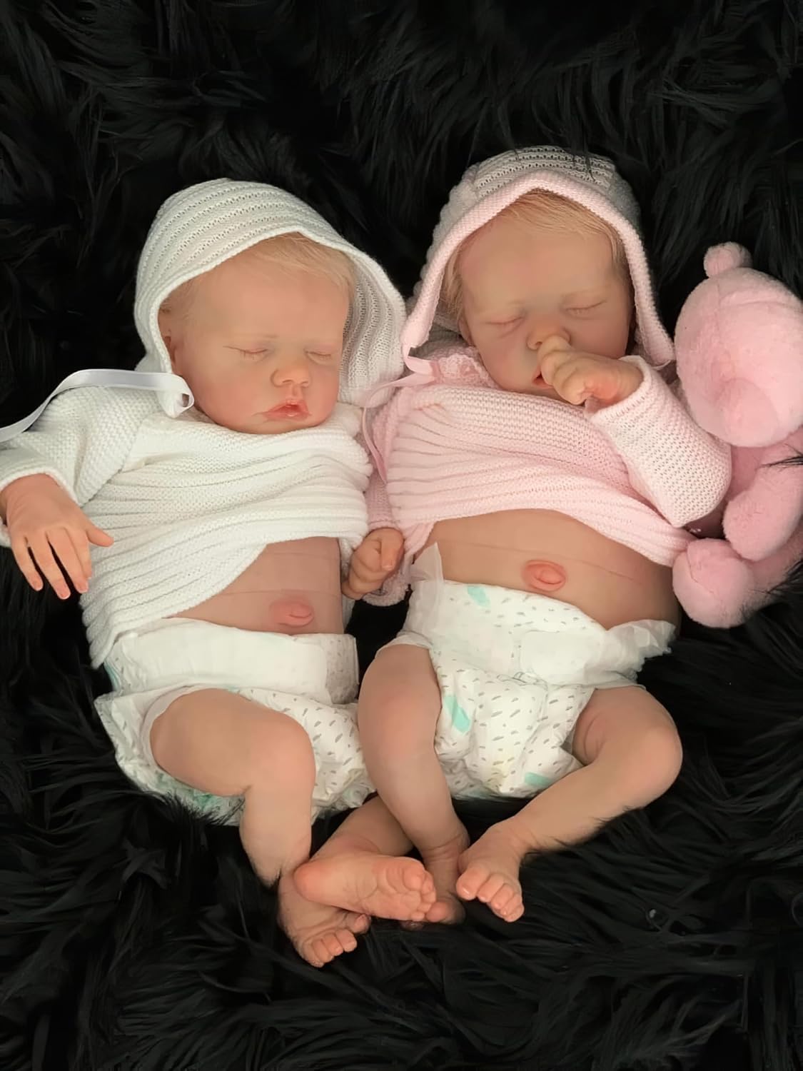 Ardol Classic Reborn Twins: Timeless Realism, Heartfelt Craftsmanship Designed for collectors seeking authentic newborn replicas without synthetic gimmicks, our 18" reborn twin dolls capture the serene beauty of sleeping infants through: True-to-Life Features vinyl-embedded limbs maintain natural flexion bodies (2.4 lbs each) replicate infant's comforting heft Individually rooted golden blonde hair with crown swirl patterns Closed-eye sculpting with rooted eyelashes impressions Ideal For: First-time parents practicing newborn care Photography studios creating "newborn" portfolios Nursery theme decorators Package Includes: 2 x 18" reborn dolls (boy & girl) 4-piece outfit set (2 rompers, 2 diapers) 3 accessories (1 x magnetic pacifier, 1x nursing bottle, 1x birth certificate) Why Choose Ardol: Unlike dolls with complex mechanisms prone to failure, our vinyl-embedded joints ensure lasting durability. The matte vinyl surface avoids artificial "plastic shine" while being easy to clean with baby wipes.