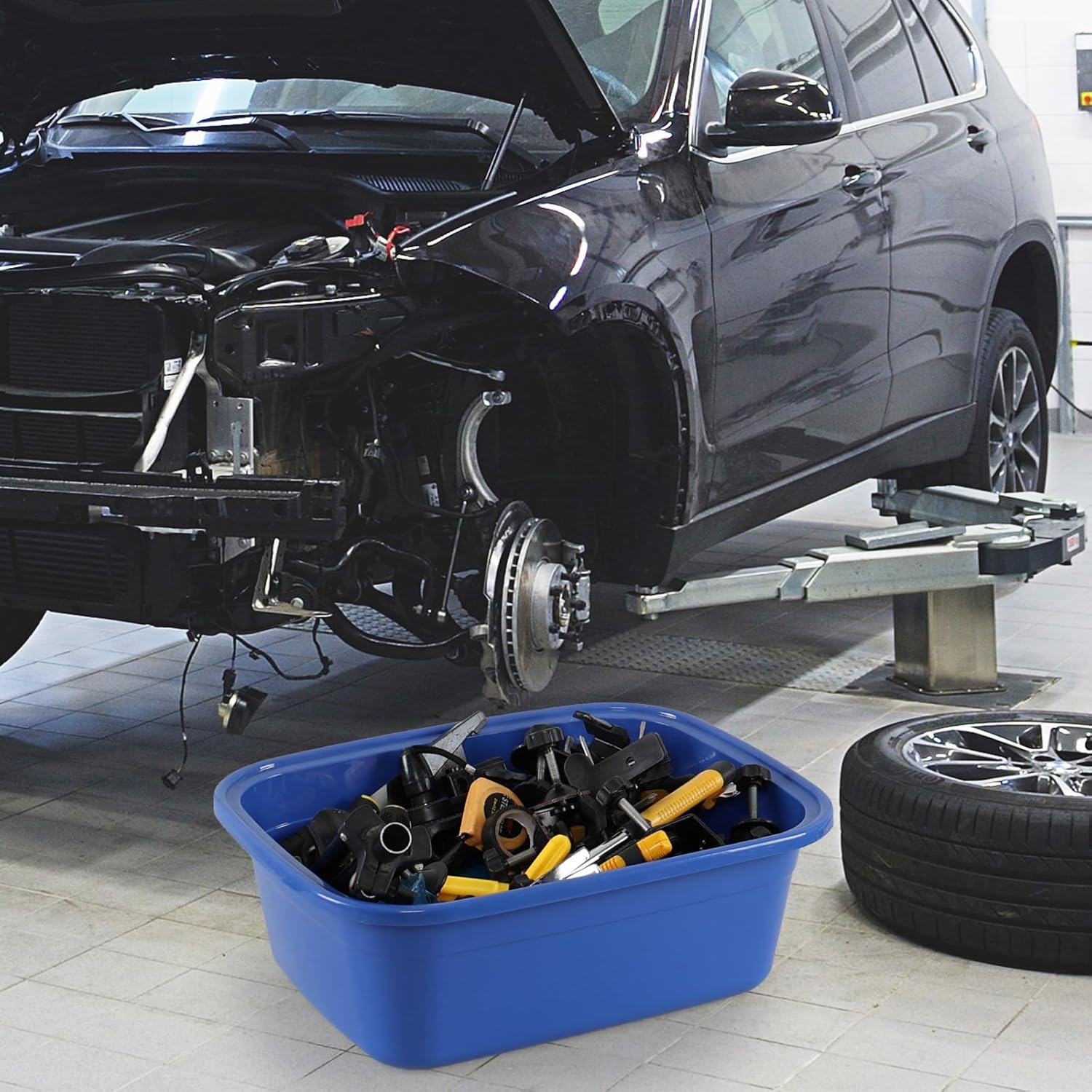 Jnktka 18 quart square plastic wash basin, set of 3, dark blue color, deep and thick, sturdy enough for daily use, size: 17.6" x 13.43" x 6.3".