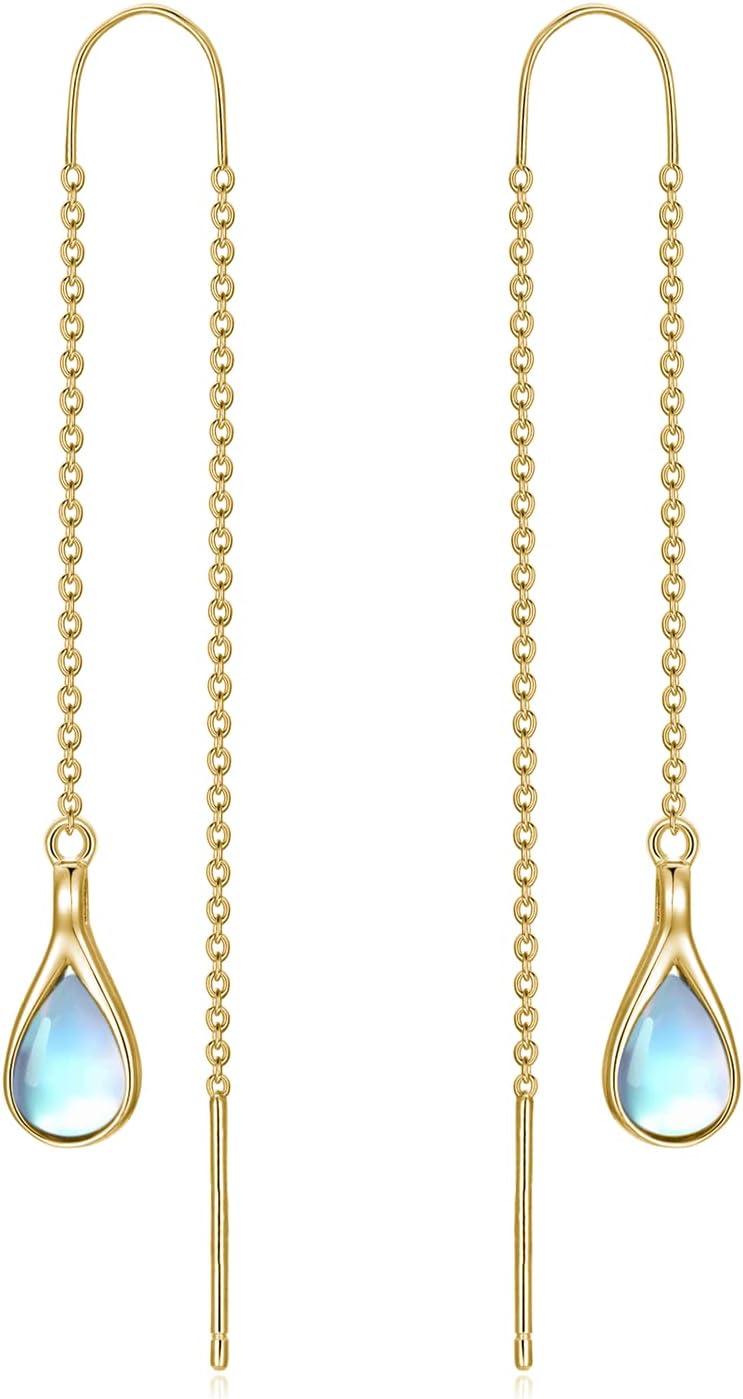 18k Gold plated Moonstone Threader Earrings Pull Through Earrings threader Long Chain Earrings for Women