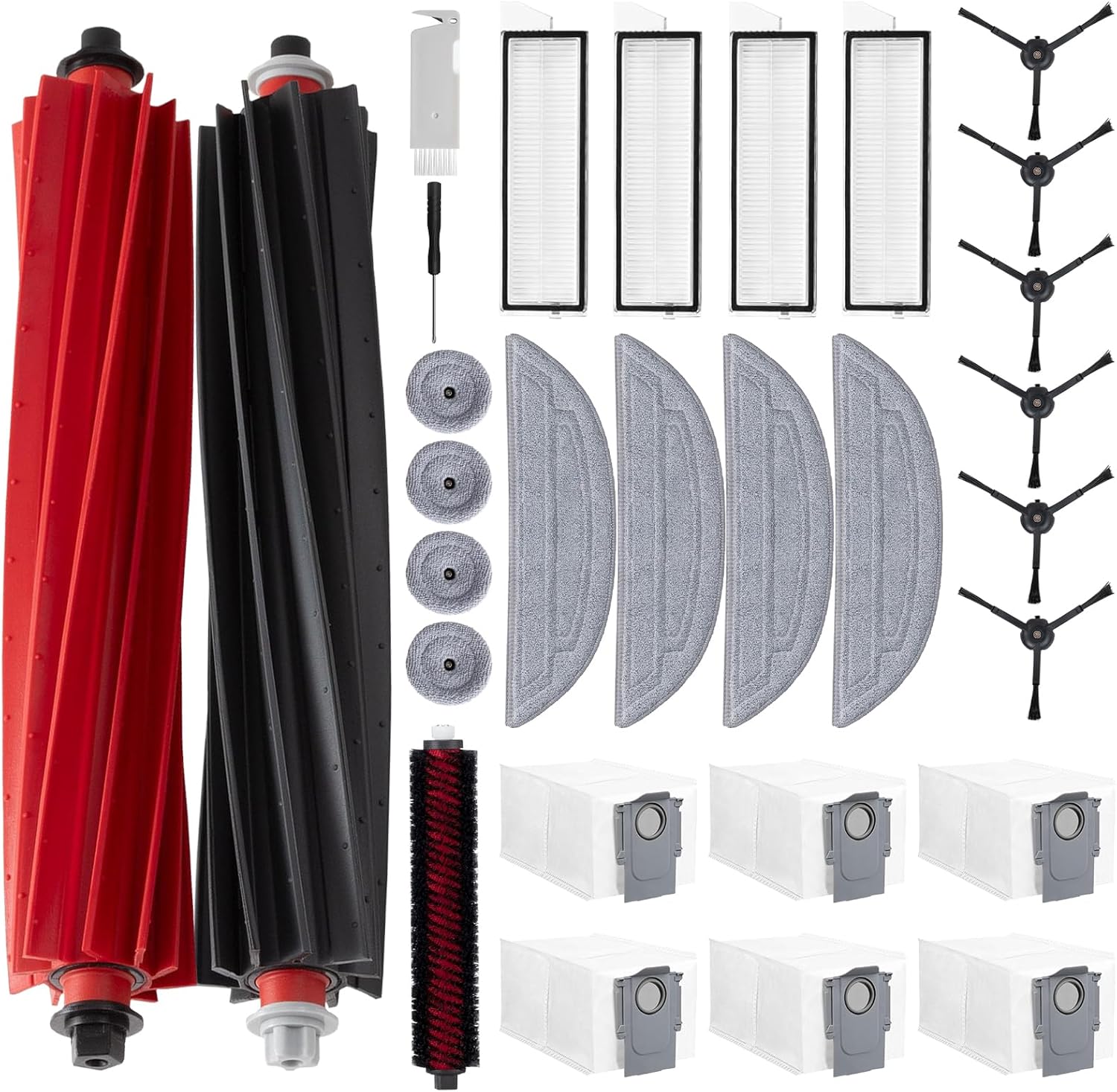 18Pack S7 Replacement Parts Compatible with Roborock S7 Max Ultra,S7 Pro Ultra,S7,S7+,S7 MaxV,S7 MaxV Plus,S7MaxV Ultra Robot Vacuum, 2 Roller Brush, 4 Filter, 6 Side Brush, 4 Mop Cloth and 2 Installation Tools
