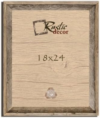 This 18x24 frame is manufactured from 100% authentic weathered wood allowing the rustic charm of the natural knots, nail holes and color variations show through. Natural in color and ready to hang with plexiglass, back and hangar included. All our frames are custom made at the time of order and will vary slightly from the picture due to the nature of the wood. Please remember to peel off the protective film from your plexiglass before hanging. 21½W X 27½H X 1½D