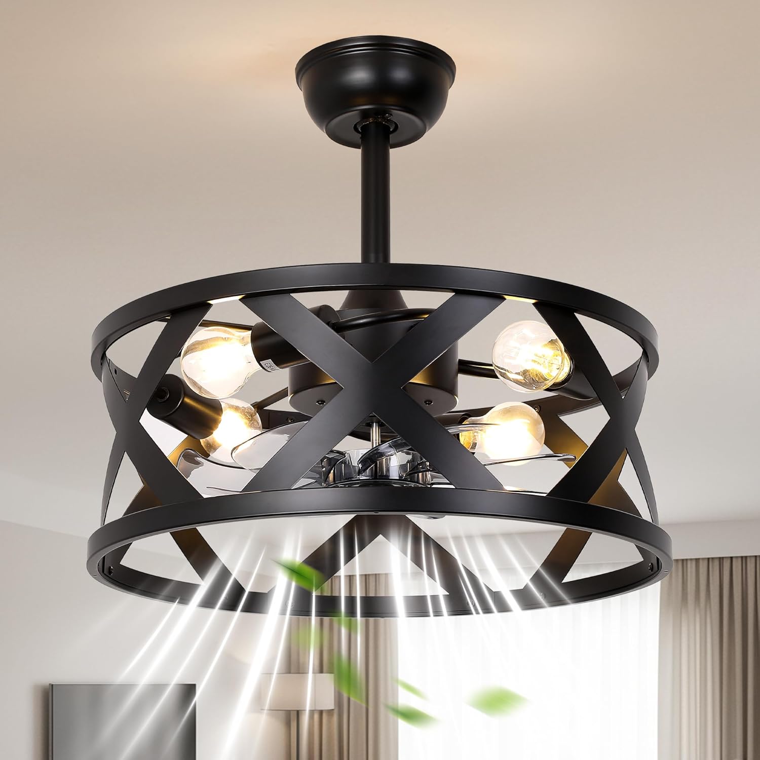 | Other Special Features of the Product | 4*E26 Bulbs (not included), 6 Fan Speeds, Invisible Blades, Reversible DC Motor, White Fabric Cage |