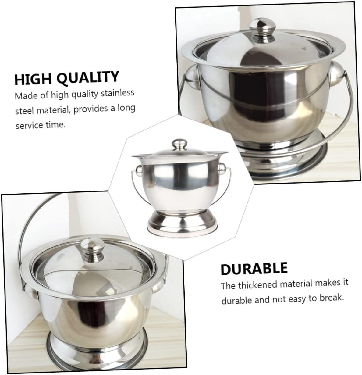 Package Include 1 x Storage holder Characteristics -Material: Stainless steel handheld spittoon -Size: About 25.00X20.00X19.00cm/9.82X7.86X7.47inch home spittoon -Color: Silver portable potty - , can be sterilized with very hot water stainless chamber pot. -With cover design, isolate peculiar smell, clean and household spittoon. - stainless steel material, thicker material, drop-resistant and durable piss pot. -Non-slip base, stable and not tipping, you can use it with confidence urinal pail pot. -Portable handle, labor-saving and easy to carry and easy to take spittoon.Goods Informationurinal pot If you are looking for a convenient and durable spittoon, then you can come to see this spittoon, made of , can ensure its durability and practicability.stainless steel spittoon Heavier than plastic and not easy to knock over.stainless chamber pot It is one of the choices for you.simple urinal bucket Suitable for multiple occasions.urinal pail pot Suitable for home, car, travel or outdoor use
