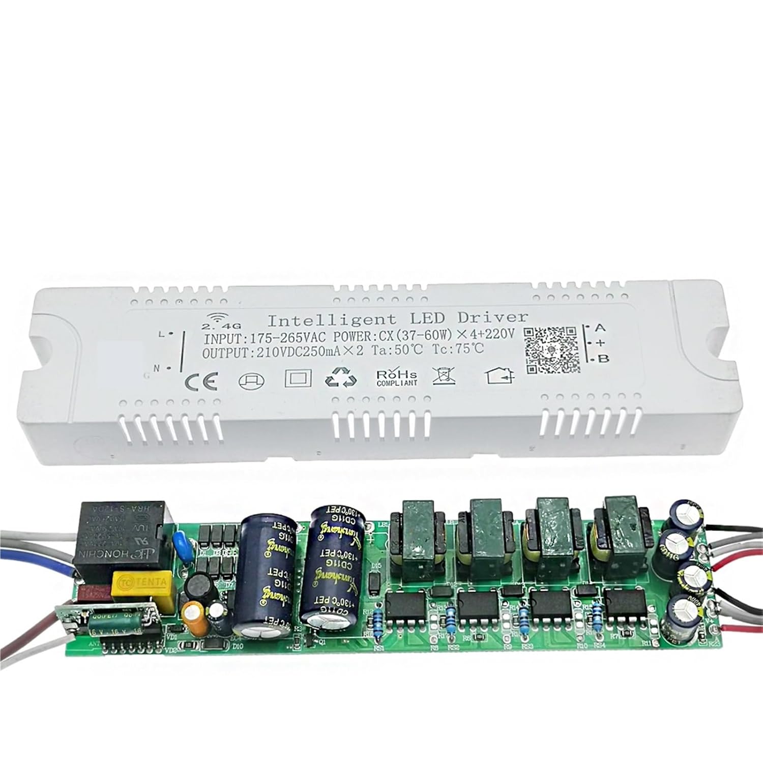 Lighting Accessories / Low Voltage TransformersPower : (37-60W)x4Input Voltage :AC175-265V 50/60HzOutput Voltage :(37-60W)x4: DC210VOutput Current: 220mA-250mA ( both current all suitable )Control :2.4G RF Remote and APP Control Distance :Less than 30mSize: (37-60W)x4: 170*39*23mm==========Voltage: With Extra 220VCurrent: 1pcsPlug Type : Weight : 0.16kgModel Number : 2.4G 37-60Wx4+220VOutput Signal : DCInput Signal : ACOutput Voltage : 210VInput Voltage : AC175-265VItem Type : Lighting