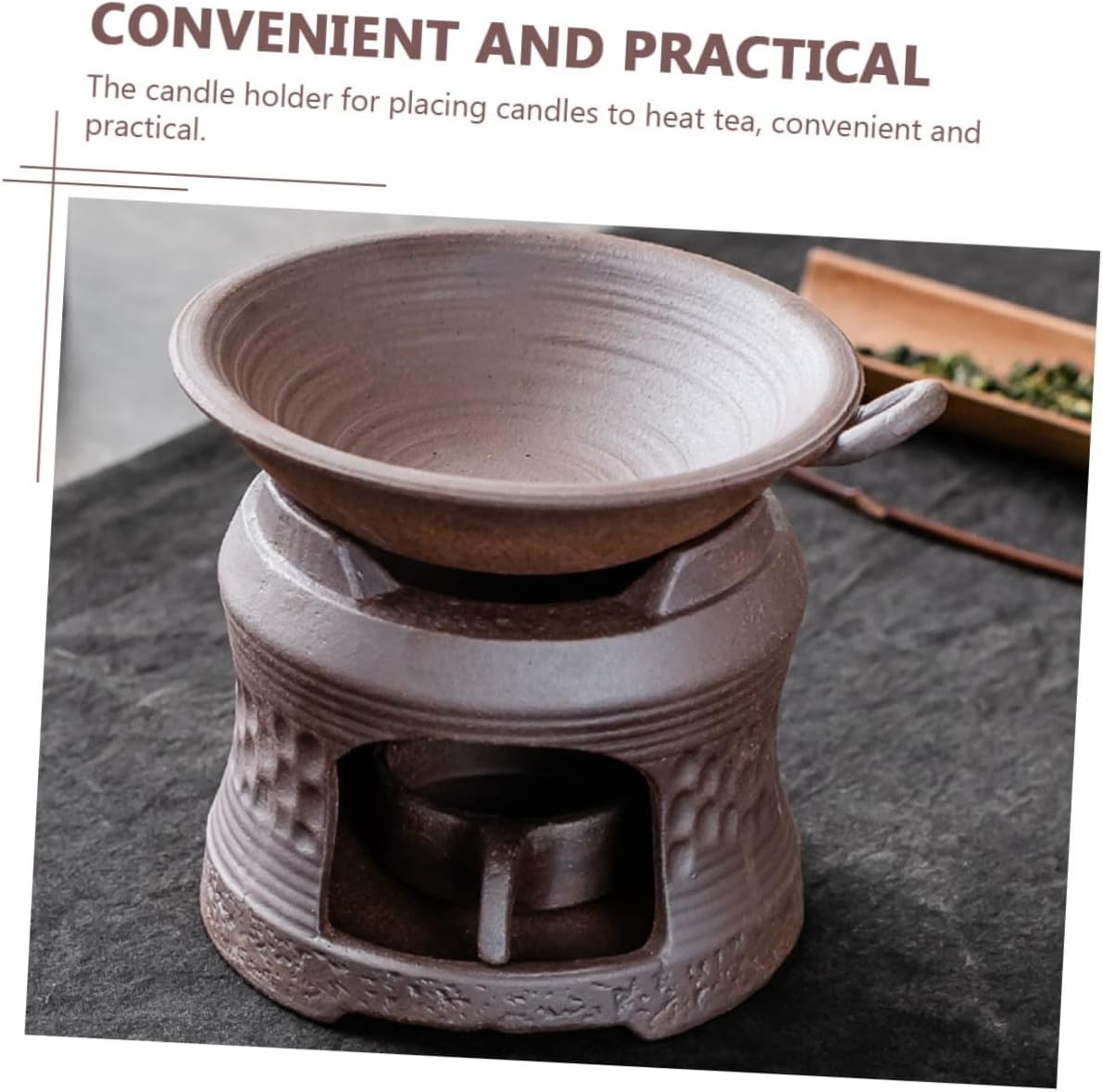 Package List 1 x Tea Brazier 1 x Tea Tray 1 x Candle Holder Characteristics -Color: Brown Tea Tray -Material: Ceramic Candle Holder -Size: About 9.50X9.50X8.70cm/3.73X3.73X3.42in Teapot Warmer - This product has workmanship, which practicability and durability Household Tea Warmer. - This set of products are designed with clear color and elegant appearance Tea Stove Holder. - Warm a pot of tea people walk tea is not cold, tea has a fan Teapot Tray. - Although the design of this product is simple, it is so practical when you use it Tea Stove Warmer. - This product is made of high grade material, which can be use for a long time Ceramic Candle Holder.Goods InformationHousehold Tea Warmer Are you looking for a convenient tea warmer set? This tea warmer will be a wonderful choice for you, this item is made of with simple design, an appearance suitable for your home, it must be one of for you