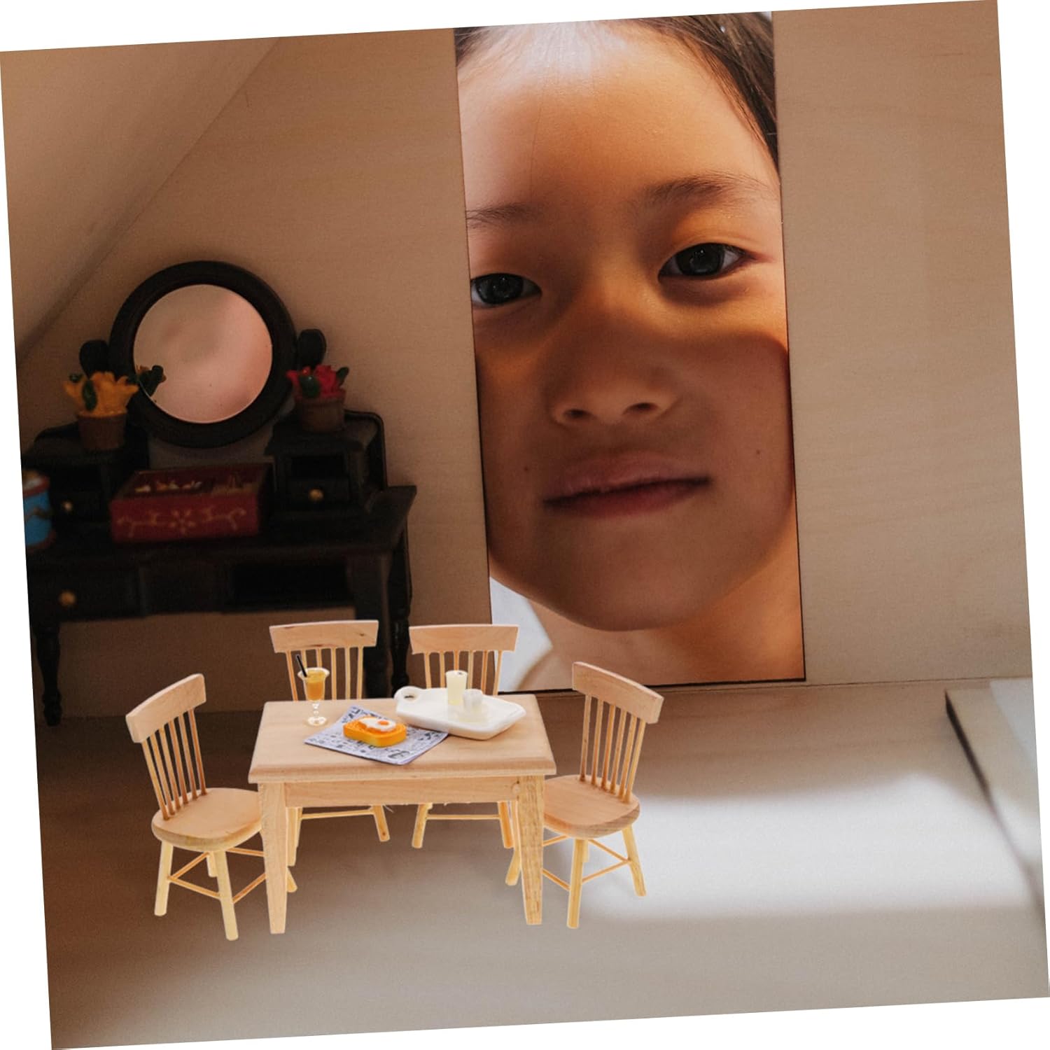 Package List 1 x Doll House Table Decor 4 x Doll House Chair Decors 11 x Doll House Food Decors Characteristics -Size:8.10X4.30X3.50cm/3.18X1.69X1.38in (chair) mini house furniture -Color:Assorted Color mini furniture for dollhouse -Size:10.30X6.70X6.20cm/4.05X2.63X2.44in (table) tiny chair -Material:Resin dollhouse decorations - It comes with the appropriate proportion, which makes the dining table and chair with food model dollhouse furniture. - Craftsmanship and excellence. Unique molding makes it more delicate and attractive miniature chair. - Can be used as photo prop for taking some beautiful pictures, lovely, decorative and beautiful mini house decor. - Owning the and break resistance ability, very practical, with excellent texture miniature furniture model . - Beautifully crafted and realistic, with high degree of realistic reproduction, can't put it down miniature house furniture.Goods Informationminiature chairs Manufactured from resin, the mini model is very sturdy and vivid.miniature kitchen model The mini house chair and dining table for decorating or playing, suitable for house decor and handmade items decor.dollhouse dining table The chair model miniature is specially designed for mini house ornament