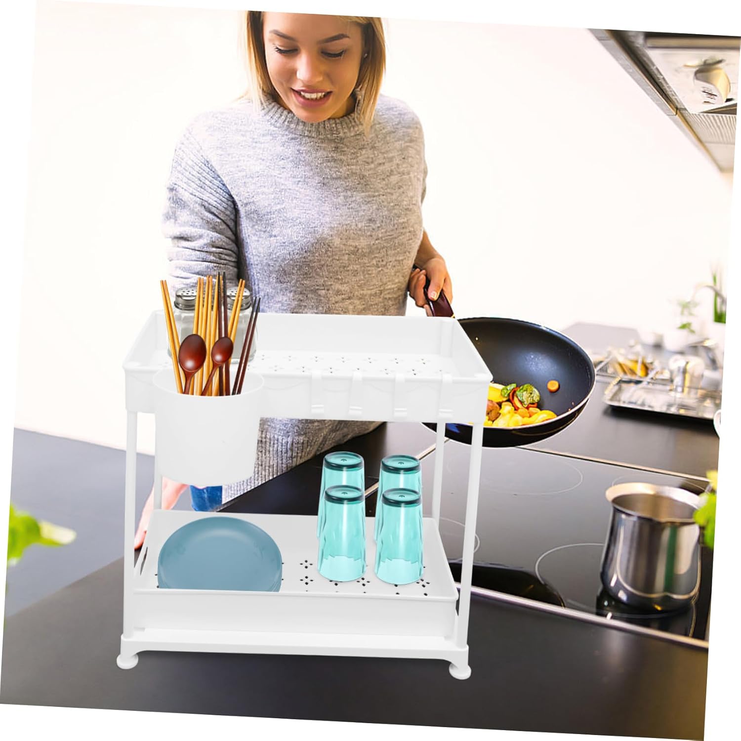 Package List 1 x set of kitchen organizer Features - Size: 40.00X36.00X23.00cm/15.72X14.15X9.04in telescoping sink shelf - Color: White under kitchen sink organizer -Material:PP under sink storage organizer - Smooth sliding basket, no noise when pulling. Suitable for various sizes of cabinets, flexible and convenient under sink drawers storage rack. - Space-saving design, making full use of the space under the sink. Easy to install, no need for complicated tools. multipurpose sink rack - Easy to clean, just wipe with a damp cloth, it allows you to easily access the item you need in the cabinet, convenient retractable sink storage rack. - Owning the and break resistance ability, the kitchen cabinet organizer is very for a longtime pull out drawers storage rack. - The cabinet organizer rack adopts hollowed out design, which can drain the water, sanitary and to use. sink storage rack expandableGoods Descriptiontelescopic sink storage rack The 2-tier kitchen storage organizer has enough capacity, which can meet your different storage needs.telescopic sink shelf With sliding basket design, it allows you to easily access the item you need in the cabinet, very convenient to use.telescopic sink holder It has a wide range of application, suitable for kitchen countertop, under sink, cabinet and so on