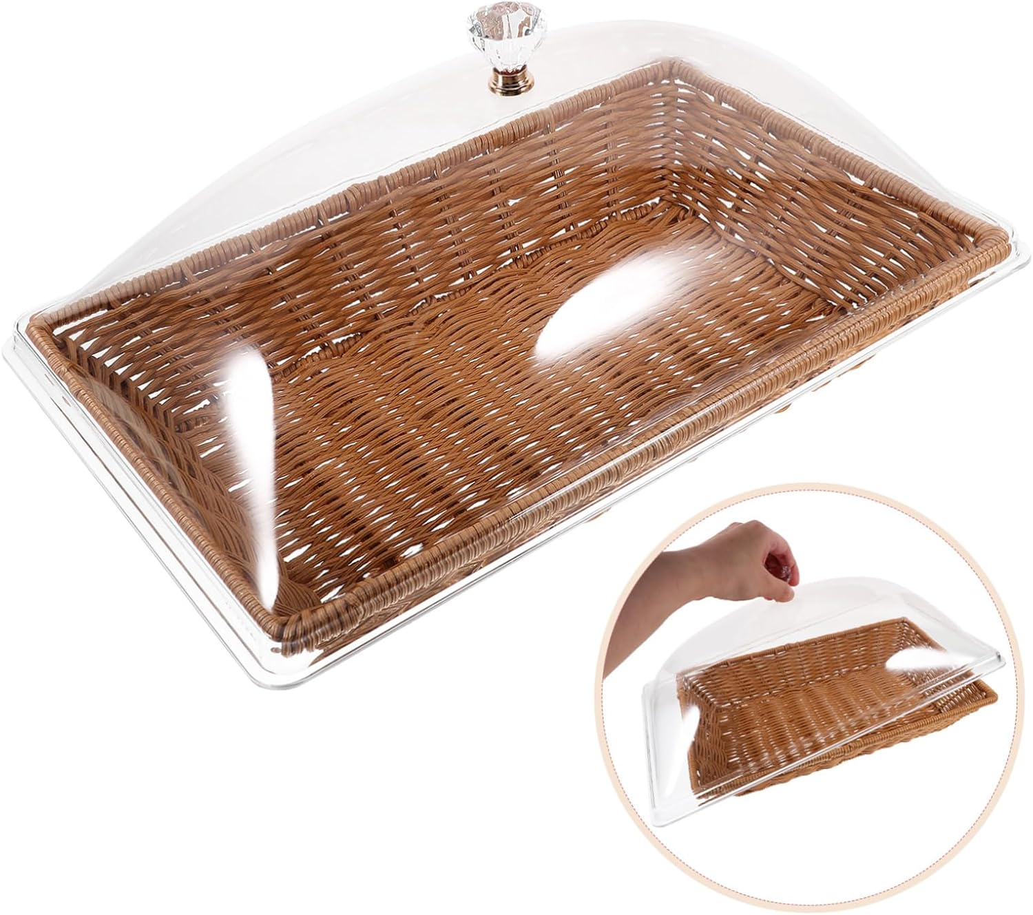 Package List 1 x basket 1 x lid Features -Material:PP, acrylic imitation rattan basket - Size: 37.00X23.50X20.00cm/14.54X9.24X7.86in serving bread basket - The multifunctional basket is designed with transparent handle lid, making it perfect for storing or displaying Food Serving Tray. - This multi-functional basket is and can be used as a food serving tray or organizer, very useful in basket with lid. - Made from food-grade and materials, this basket a healthy and storage solution for food food baskets for serving. - With its lightweight and smooth design, this basket is easy to carry, handle, rounded edges provide protection snack storage baskets. - The transparent cover of the basket not only protects the contents from stains but also allows for easy visibility vegetable basket. - Desktop Storage BasketGoods Informationkitchen multi-purpose basket This basket is and resistant to deformation.Food Serving Basket The food basket is a versatile storage holder that can be used as a fruit basket, bread basket, or general storage basket.bread basket for serving Its sleek color and minimalist design make it a stylish addition to any home.vegetable basket With its large size, it offers ample space to hold a large portion of food