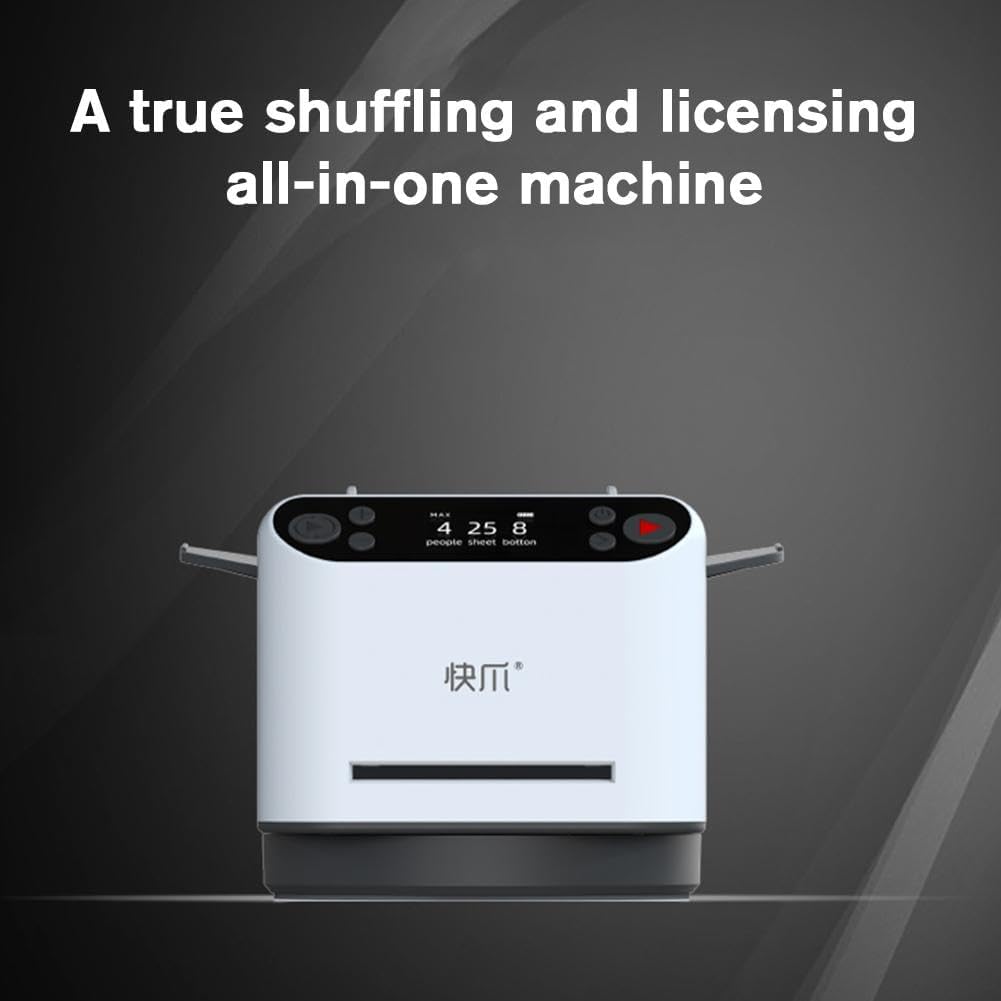 Product InformationName: 2024 New 2 in 1 Licensing and Shuffling MachineMaterial: ABSDisplay: OLED displayInterface: Type-C 5VBattery: 5200mAhSize: 16.2*12.7*11.6CM/6.37*5*4.56 inchesWeight: 860gFunction: clockwise/counterclockwise, dealing 360 rotation, dealing left/right swing dealing, support multiplayer games, fast physical shuffle, electronic random dealing, directional dealing, shuffle dealing sensingDESCRIPTIONAUTOMATIC SHUFFLER: Automatic shuffler with dual functions of shuffling and dealing. Oversized, shock-absorbing, non-slip base, low noise dual motors, stable and quiet dealing. Enjoy a seamless and efficient shuffling experience.WIRELESS CARD CALLING: The automatic card dispenser features enhanced functionality for convenience and user-friendliness.4 wireless remote card calling buttons. This allows players to easily signal and request cards without interrupting the flow of the game. Whether you are sitting at the other end of the room or the other end of the table, the wireless function ensures seamless communication for additional efficiency.5200mah Rechargeable Battery: Type-c rechargeable 5200mAh lasts 37 days Highly durable and ready to use without plugging in, this automatic card dealer has an oversized, shock-absorbing, double-layer non-slip base and embedded, low-noise dual motors for stable and quiet card dealing.360 ROTATIONAL DISPENSING: The shuffler supports clockwise dealing and counterclockwise dealing. It can be set to deal randomly from one player or fixed position, and can easily set the number of players (1-8) ), public cards (1-99), dealing cards (1-99), and the number of cards dealt at one time (1-99).Product List1*Dealer1*Charging cable1*Manual4*Remote control (optional)