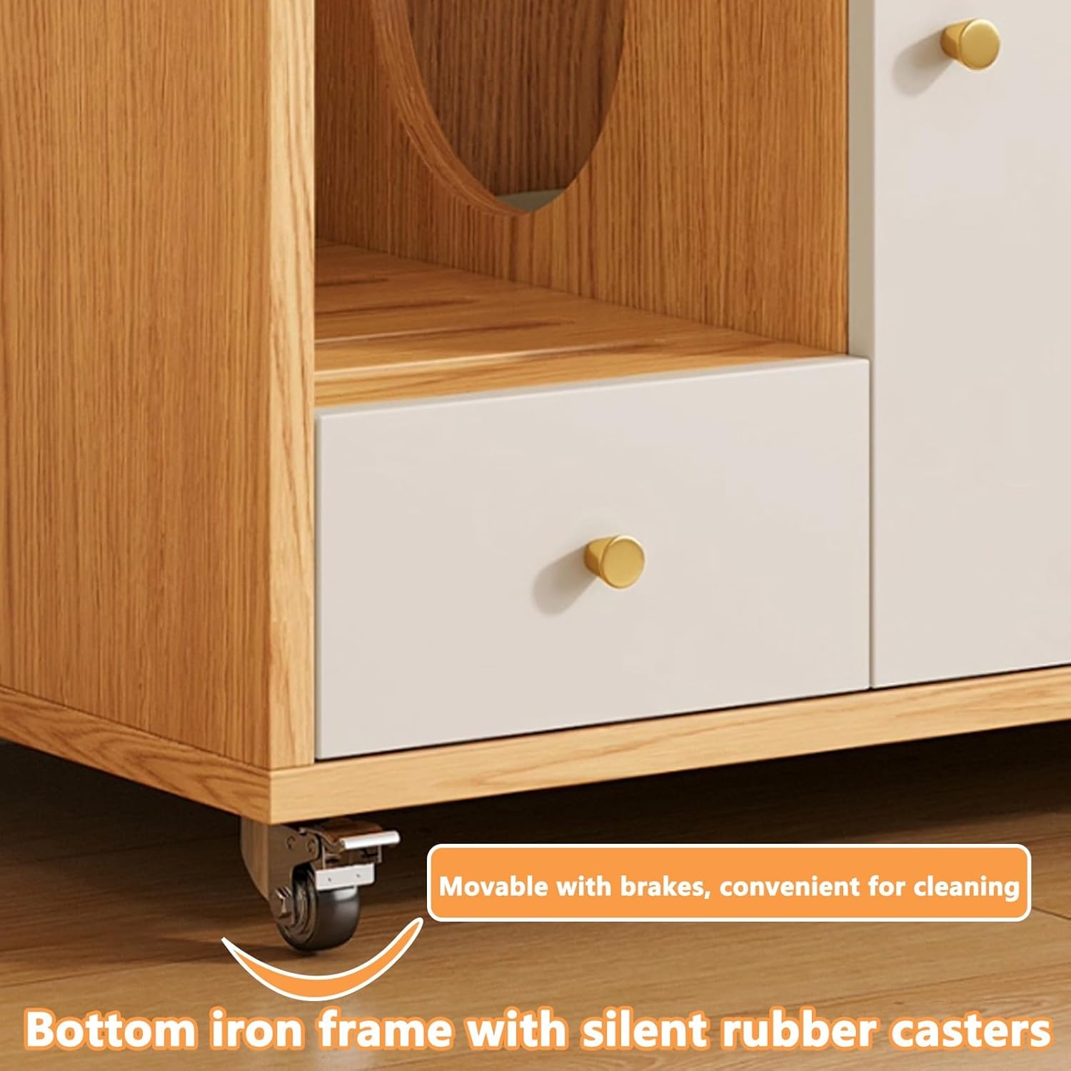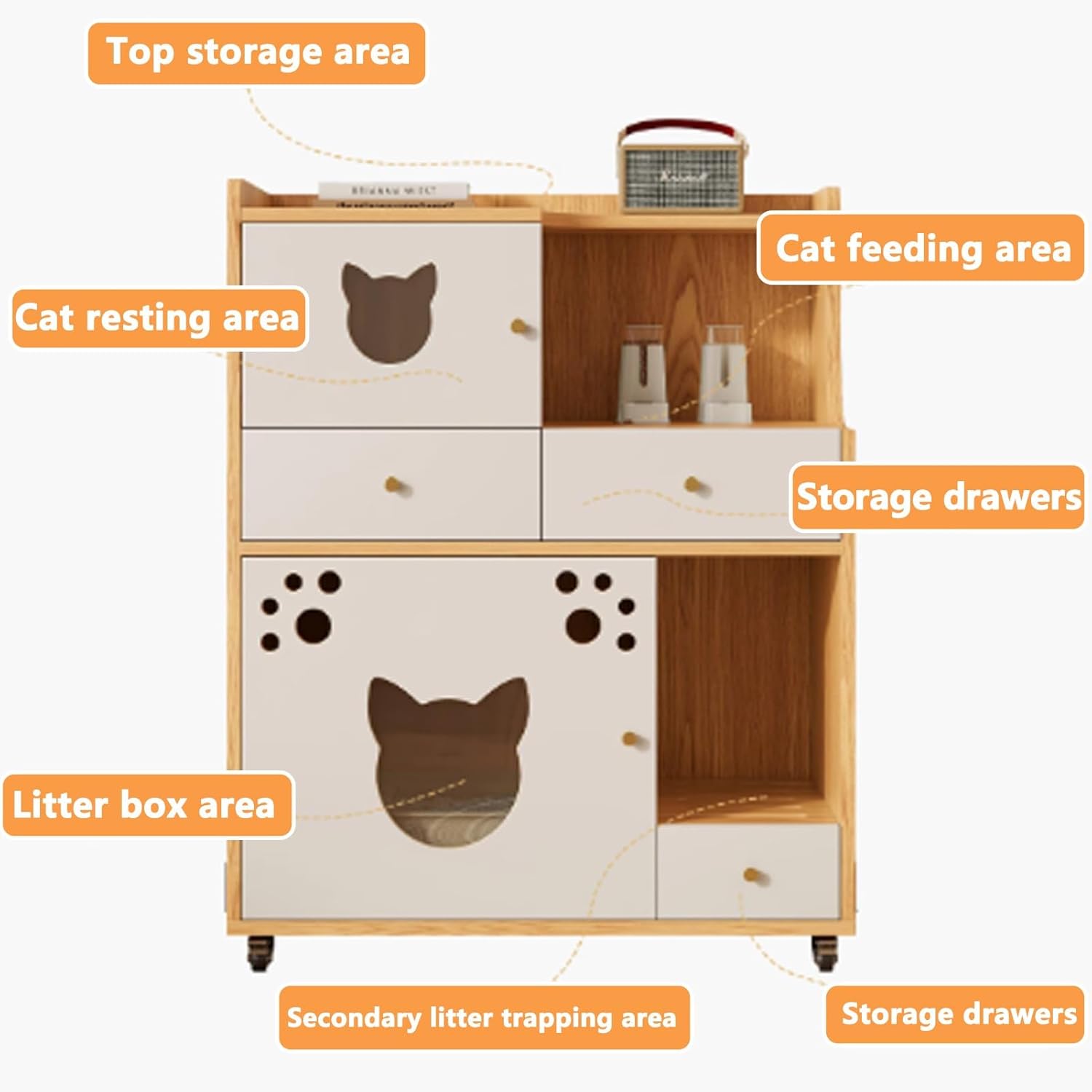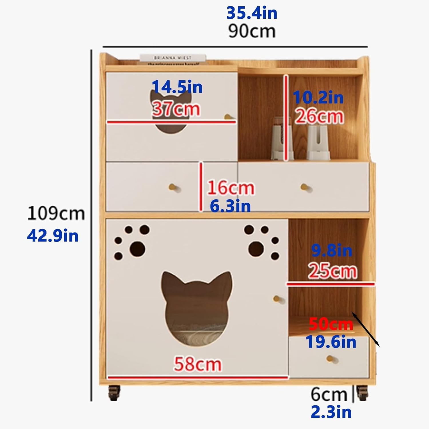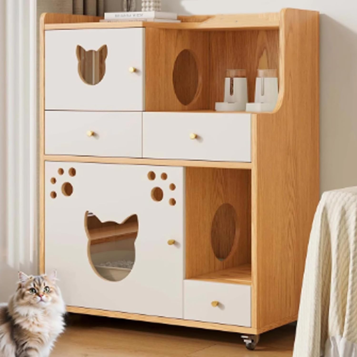 More than just a hidden litter box, YUGXTH versatile piece serves as an end table, TV stand or coffee table. Our cat box enclosure is thoughtfully designed to meet your cat’s needs while complementing your lifestyle.Specifications:Product Name: Hidden Litter Box, cat litter box furniture hidden, cat litter box enclosure furniture, hidden cat litter box furnitureMaterial: solid wood multi-layer boardColor: natural, whiteSize: 65x60x109cm/25.6x23.6x42.9in,90x50x109cm/35.4x19.6x42.9inWhether to assemble: yesPackage Includes:1 x Cat Litter Box EnclosurePurchase Notes:1. This product only includes the litter box cabinet.2. Due to factors such as lighting, shooting, and monitors, there may be differences between the picture and the actual product color. Please refer to the actual product.3. This product is measured manually, and there may be an error of 1-3 cm. Please refer to the actual product for specific dimensions.