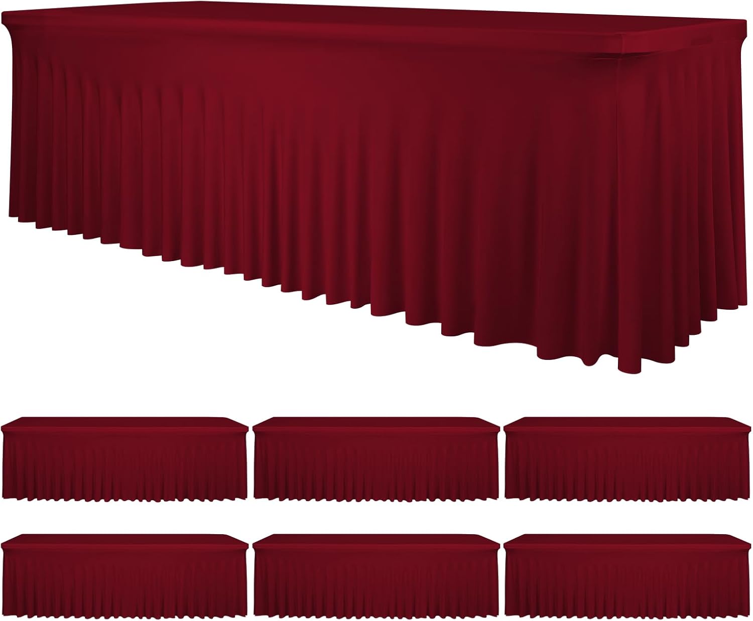 Shopping separately for table skirts and tablecloths? What a pain. And just forget about trying to match your skirt to a tablecloth of the same color. You need the Perfect Memories fitted tablecloth and skirt combo! It’s made from 1 solid piece of stretchable spandex and covers your entire table, head to toe. Just what the party doctor ordered to make decorating fast and easy! Package Include: 2 Pack Spandex Table SkirtsSpandex Table Skirts Size: 8FtStretch Tablecloth Color: BlackSpandex Table Skirts Material: 100% High quality polyester fabricWide Use:WeddingBaby ShowerBanquetBuffetTrade showCorporate partyFeatures:1.These stretch spandex table covers adopt novel design method to integrate fitted table cover and table skirt.You need't spending more time on shopping separately for tablecloths and table skirts.2.Made of thick and premium quality spandex fabric,which make them soft, stretchy and sturdy feel,durable and reusable.The fabric is wrinkle-free and stain resistant.3.Due to the convenient and thoughtful design,no tools are needed.Just pull them over banquet or trade show table, then use your hand make them cover your entire table, head to toe to fit your table.Easy to use and store: Unlike other Table Skirts that are difficult to care for and store, ours is completely machine washable and easy to fold flat for quick transportation and storage. Just toss into the wash on “cold” and tumble dry on “low.” No dreaded “hand-wash only” or “air dry” requirements, here!