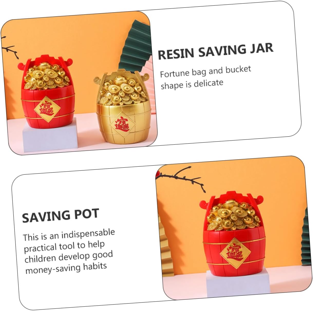 Package Include 2 x piggy banks Characteristics -Product Info: Pig Can - Color: Assorted color coin piggy bank. - Size: 14.00X10.00X10.00cm/ 5.51X3.94X3.94inch.(Fortune bucket type) money bank - Material: resin piggy bank . - Size: 13.00X10.50X10.50cm/ 5.11X4.13X4.13inch.(Fortune bag type) lucky piggy bank - Fortune bag and bucket look, very festive. Not only a piggy bank, but also can be desktop decor and saving piggy bank. - Manufactured with resin material, this piggy bank has excellent durability and practicality to withstand long time use cash piggy bank. - Perfect for sending as a nice on New Year, Valentine's Day, Thanksgiving Day, Christmas and more festivals money piggy bank. - Help you keep your changes and coins well organized and easy to Also help cultivate good habit of saving money piggy bank for adults. - Pretty color, excellent workmanship and highly simulated shape, a nice decor for your home and office cute piggy bank.Goods Descriptionpiggy coin bank Adopting resin materials, this adorable piggy bank can be placed stably on desktop or bookshelf.piggy bank cash It can fit almost every kinds of standard coin, encourages to save with this piggy bank, also help cultivate their good habits.piggy bank for adults This decorative New Year theme piggy bank is the perfect adorn for household