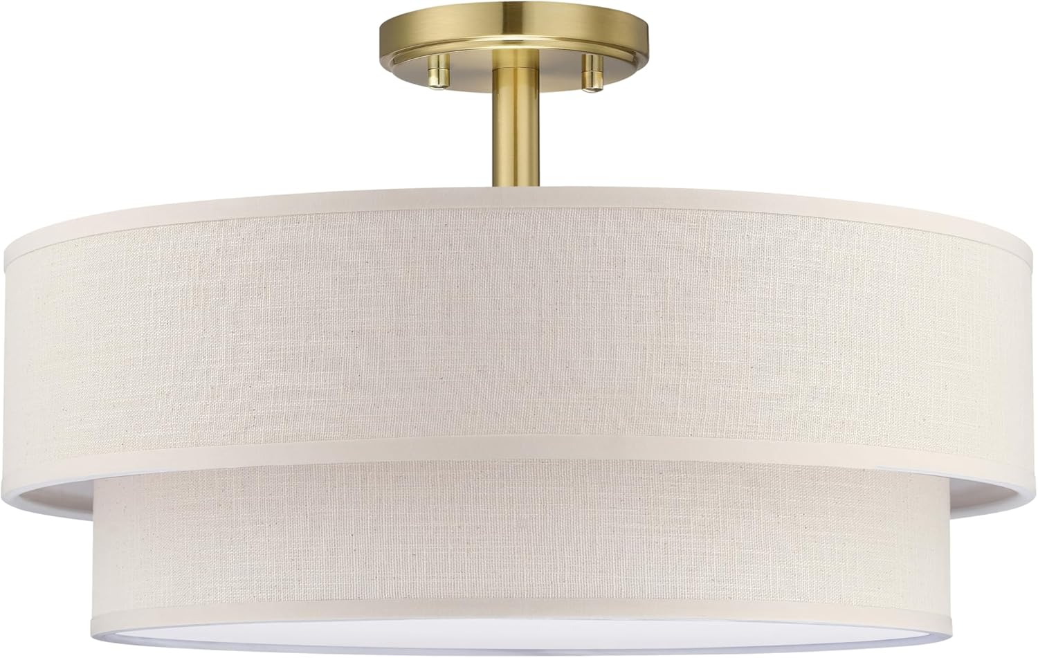 2-Tier 18" Adjustable LED 24W 3000K/4000K/5000K Semi Flush Mount Close to Ceiling Light Fixture Cream Fabric Shade Black Finish for Bedroom,Living Room,Dining Room Hallway
