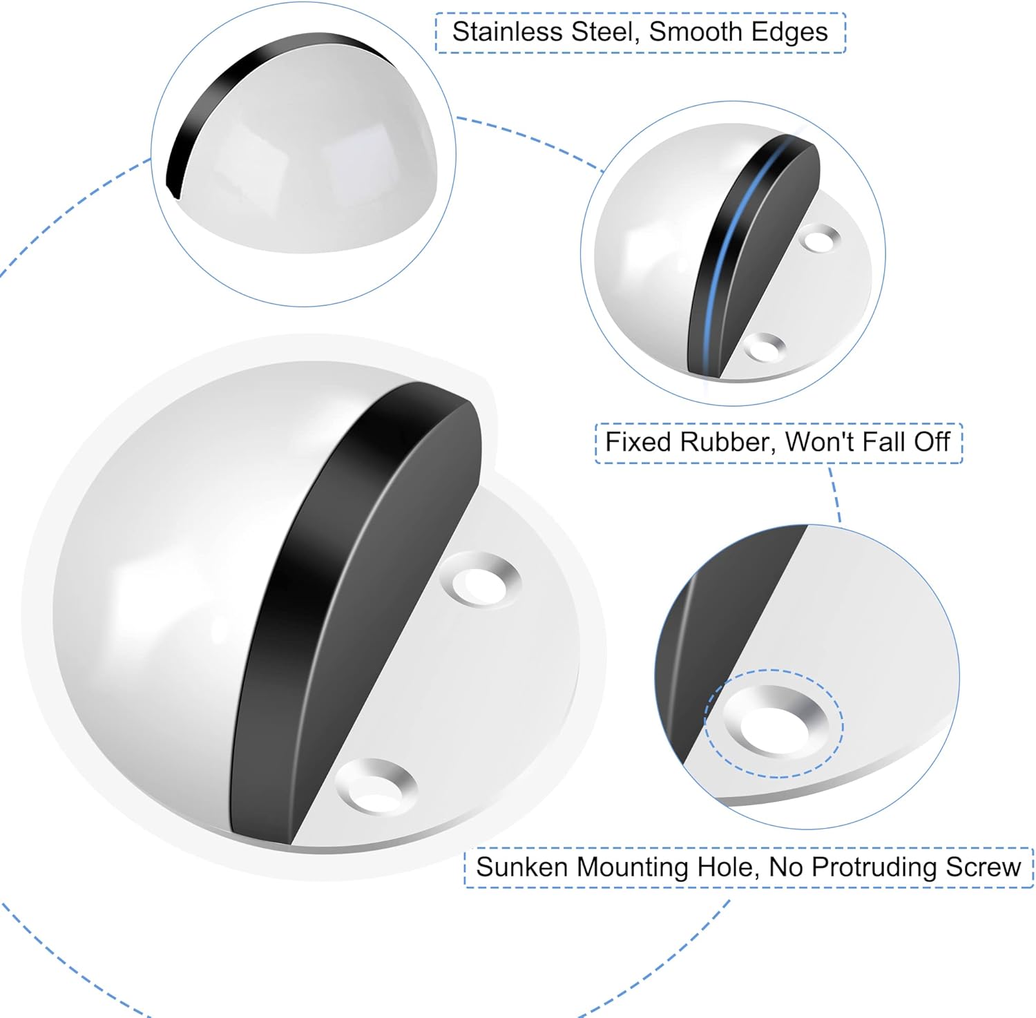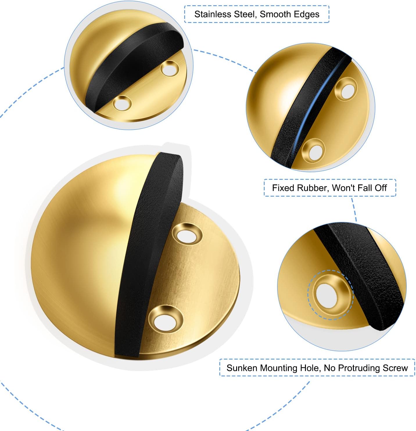 • Stainless Steel Floor Door Stopper --- Door stops selected high quality stainless steel construction with soft rubber door bumper. Door stop floor mount has high hardness and wear resistance, built to resist daily scratches, corrosion and tarnishing, more sturdy and durable than the metal door stop in the market.
