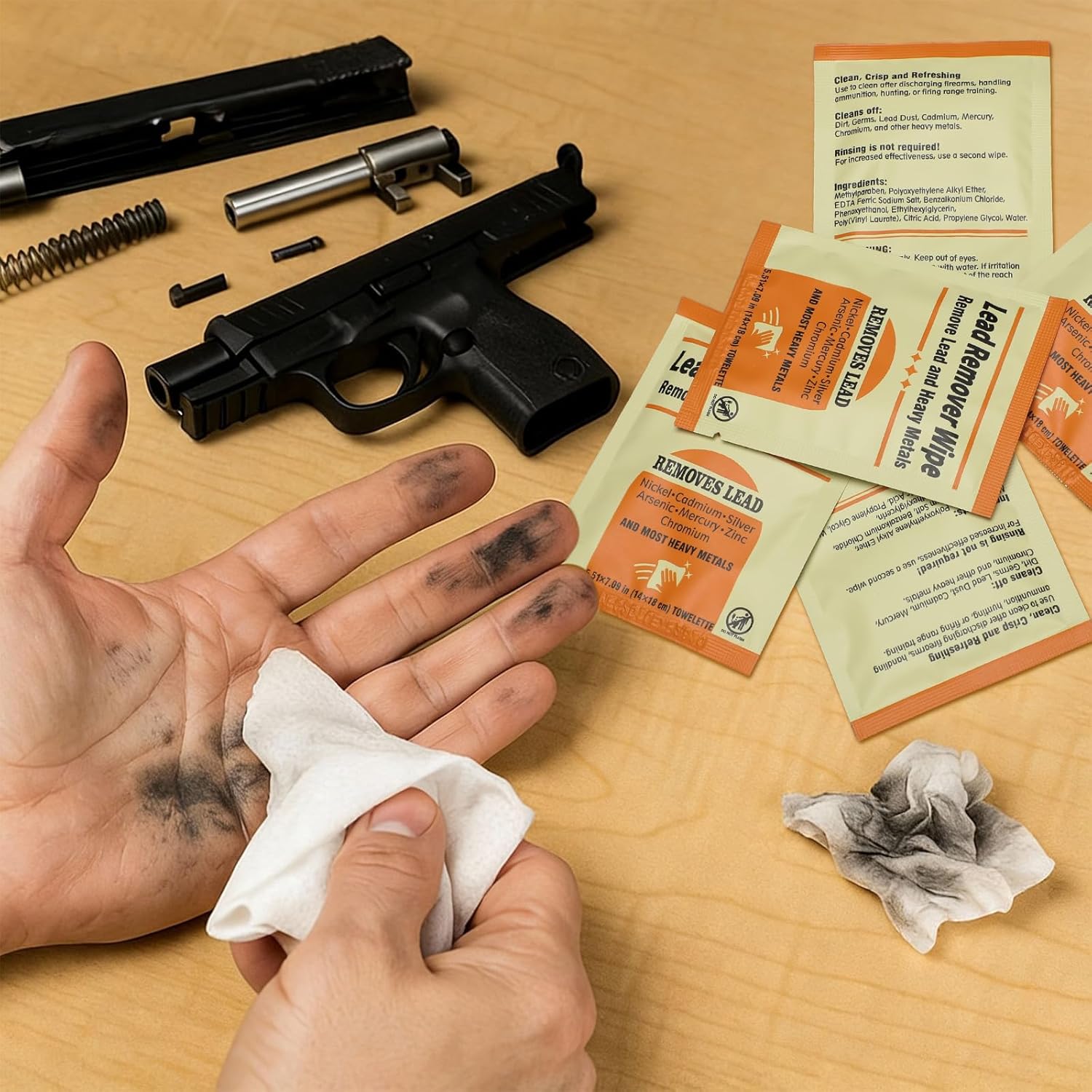 200 Pack Lead Remover Wipes for Shooting Hand&Surface Cleaning Wipes Effectively Removes Lead, Dust, Oil&Grime Individually Wrapped Wipe for Shooting Ranges, Hunting, Industrial Use (Orange)