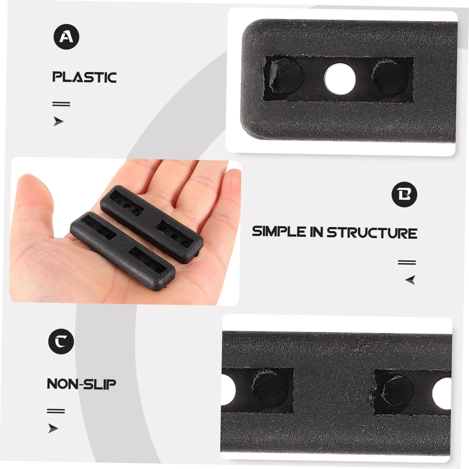 Package List 200 x anti slip furniture pads Features - material: Made of plastic material, these furniture pads are wear-resistant and not easy to deform furniture feet protectors. - Multi-purpose: These non-slip pads are suitable for sofa, bed, cabinet, coffee table and other furniture feet plastic furniture foot pads. - Stylish and practical: Simple shape and color design, it does not affect the appearance of furniture furniture feet covers. -Material:Plastic furniture foot covers -Size:5.20X1.50X0.60cm/2.04X0.59X0.24in furniture floor protectors -Color:Black furniture feet protectors pads - Easy to install: Just install the pad under the furniture feet, convenient and fast, bringing table feet protectors. - Furniture floor protectors for hardwood are suitable for couches with wheels, chairs, desks, tables,dressers, pianos, chair frames and so on furniture floor protector.Goods Informationfurniture nonslip pad The plastic chair leg pads are made from plastic material, very practical and useful for long term using.table feet protectors Could be used for many places, such as chair, desk, table, sofa and other furniture.furniture pad Are you looking for some furniture feet protectors? If yes, you can see our product