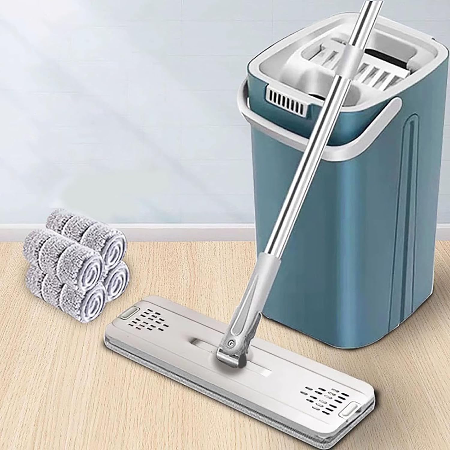 Product Name: Wash and Dry Integrated Mop Handle Material: Stainless Steel Tube Handle Length: 49.2 in Mop Head Length: 13.0 in Mop Head Width: 5.1 in Bucket Height: 15.2 in Bucket Width: 8.5 in Bucket Length: 8.7 in Weight: 1.5kg