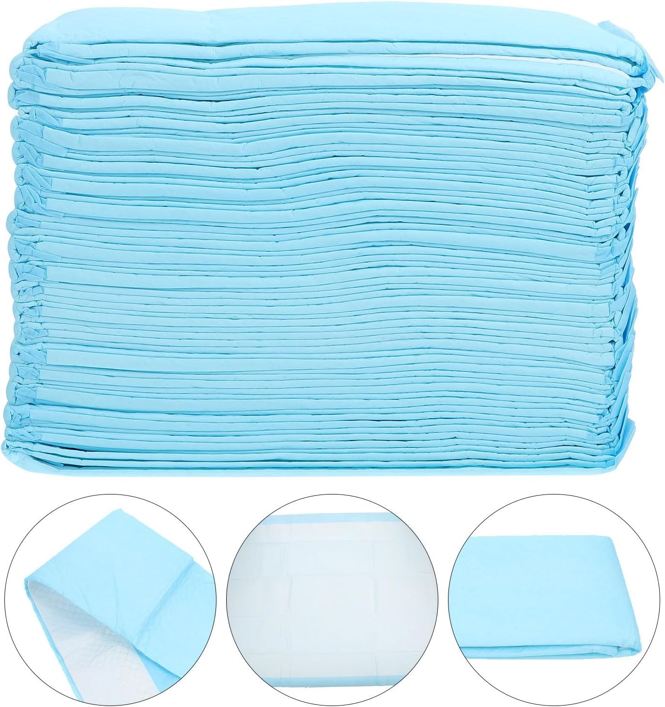 Package List 20 x pet pee pads Features -Color: Sky-blue -Material: Non-woven Fabrics -Size: Approx. 90.00X60.00X0.10cm / 35.37X23.58X0.04in -Product Info:Disposable pet urine pad - material and fine craftsmanship, sturdy and durable for a long time. - Sufficient quantity and you can also share them with your family and friends who have dogs or cats pet urine pad. - With ingredient to dog pee pad. - It can folding for storage when not used, simple and convenient for carrying out pee pads. - Effective , remove peculiar smell, strong adsorption dog potty pads.Goods Informationdog pee pad Are you searching for a pet pee pad? Our pet pee pad will be the for you.puppy pee pad Leak-proof and disposable design, it is easy and convenient to use.dog pads for pee Made of non-woven fabrics material, durable enough for your long-term use