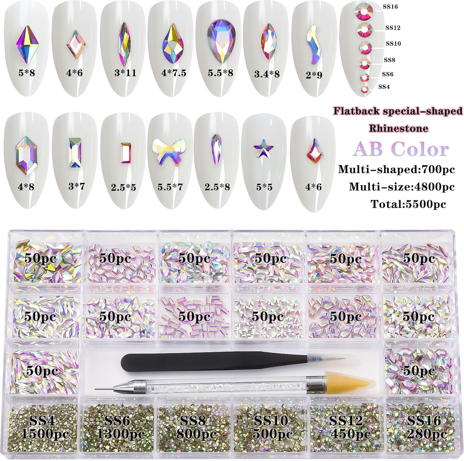 Features: brand new and quality 21 Styles Shape:Our 3D nail art rhinestones are available in 21 different hot selling styles, which add for and to your crafts, make your nails more and charming. It is a stylish and practical glass flatback crystals set. Quality Nail Art Rhinestones:The nail crystal is quality K9 glass and is very hard and not easily break. It is bonded firmly to the outer surface of each crystal bead with sparkling and brightness. Easy to Use & Carry:The nail jewels are easy to apply on natural or artificial nails. The crystals are very lightweight, making it very convenient to store and carry, so you can change and use it when you are traveling or working. It is packaged in a delicate, high-quality, transparent and beautiful outer box, which is convenient for storage and access,then use high-grade for hard carton for outsourcing, lined with bubble film packaging, to that the high-quality products are perfectly delivered to your hands. The outsourcing is beautiful, and can be used for personal use or as a gift to and relatives. Specifications: glass Color: AB Quantity: 5500pcs Size: as shown Note: No retail package. Please allow 0-1cm error due to manual measurement. pls make sure you do not mind before you bid. Due to the difference between different monitors, the picture may not reflect the actual color of the item. Thank you! Package includes: 1Box x 5500 AB Diamonds 1PC x Tweezers 1PC x Drill Pen