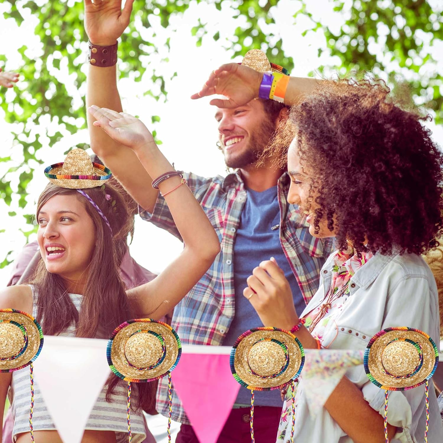 24 Pack Mini Sombrero Hats 5.9 Inch Small Straw Sombreros Party Hats Cinco de Mayo Hats for Kid Pet Doll Themed Party Decoration (Brown)