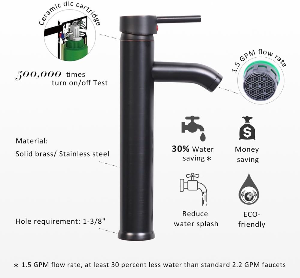 - Vivid Natural wood texture on the vanity - Moistureproof and Eco-friendly board - User-friendly installation - 2 ample size vanity drawers - 304 stainless steel hinge with damper - Aluminium alloy vanity foot pads - Zinc alloy handle Glass Sink>>> - Countertop installation - Scratch resistant curving edge - Artistic pattern, beauty and elegance - Hand made - Easy to clean up Faucet>>> - Test for water pressure - More durable with ceramic dic cartridge - Meets EPA criteria,1.5 GPM flow rate Specification: - Material: MDF Board,Tempered glass - Cabinet dimension: 24Lx 20W x 32H - Sink dimension: 16.5D x 5.5H - Color: Black - Drain hole: 2-3/8" - Faucet hole: 1-3/8" - Faucet Height: 12" - Pop up drain height: 8" - Water supply lines length: 23-5/8" - Standard US plumbing 1/2" connections Package includes: - 1x Vanity Cabinet - 1x Glass vessel sink - 1x Faucet - 2x Water supply lines - 1x Pop up drain - Accessory package - 2x Installation manual