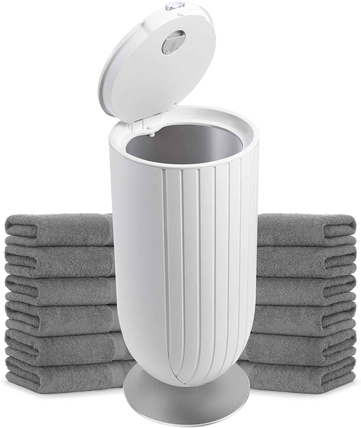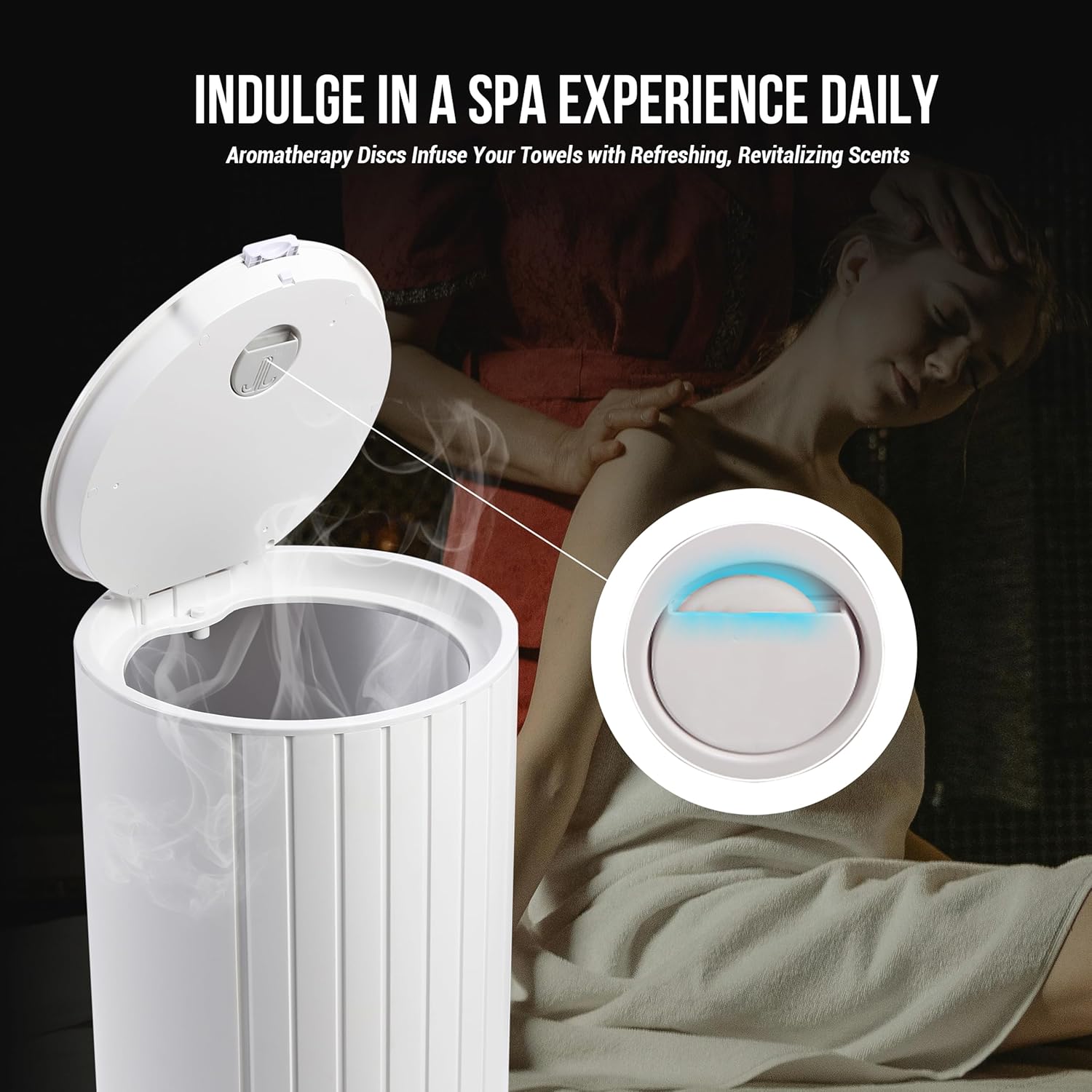 Upgrade your bathroom experience with this EZZINI 27L Large Capacity Towel Warmer, designed to provide rapid heating, customizable settings, and spa-like comfort at home. Whether you're stepping out of the shower on a chilly morning or indulging in a self-care routine, this towel warmer ensures your towels, bathrobes, blankets, and sleepwear are always warm and cozy. ✅ 10-Second Rapid Heating Technology – With advanced high-pressure warm-air circulation, this towel warmer reaches the ideal temperature in just 5 minutes, delivering warmth 30% faster than similar models. Stay cozy and comfortable even on the coldest days. ✅ Smart Multi-Mode Adjustment – Customize your heating experience with four versatile modes: Heating Mode – Warms towels quickly and evenly. · Drying Mode (2–10 hours) – Removes moisture and keeps items fresh. · Warm Timer Setting (15–90 minutes) – Choose the perfect heating duration. · Ventilation & Ion Mode – Helps eliminate odors and static while freshening fabrics. ✅ 27L Extra-Large Capacity – Spacious enough to fit two oversized bath towels (70 x 45 inches) or up to eight medium-sized towels. Also ideal for warming bathrobes, blankets, and sleepwear, providing comfort for the entire family. ✅ Aromatherapy & Night Light Feature – Transform your daily routine into a spa-like experience with the built-in rotating aroma disk, allowing you to infuse towels and clothing with your favorite scents. The soft night light ensures easy access in low-light conditions for added convenience. ✅ Safety Features – ETL certified with automatic shut-off, intelligent temperature control, and overheating protection, ensuring safe operation. Note: The interior reaches high temperatures—do not open the lid during operation.