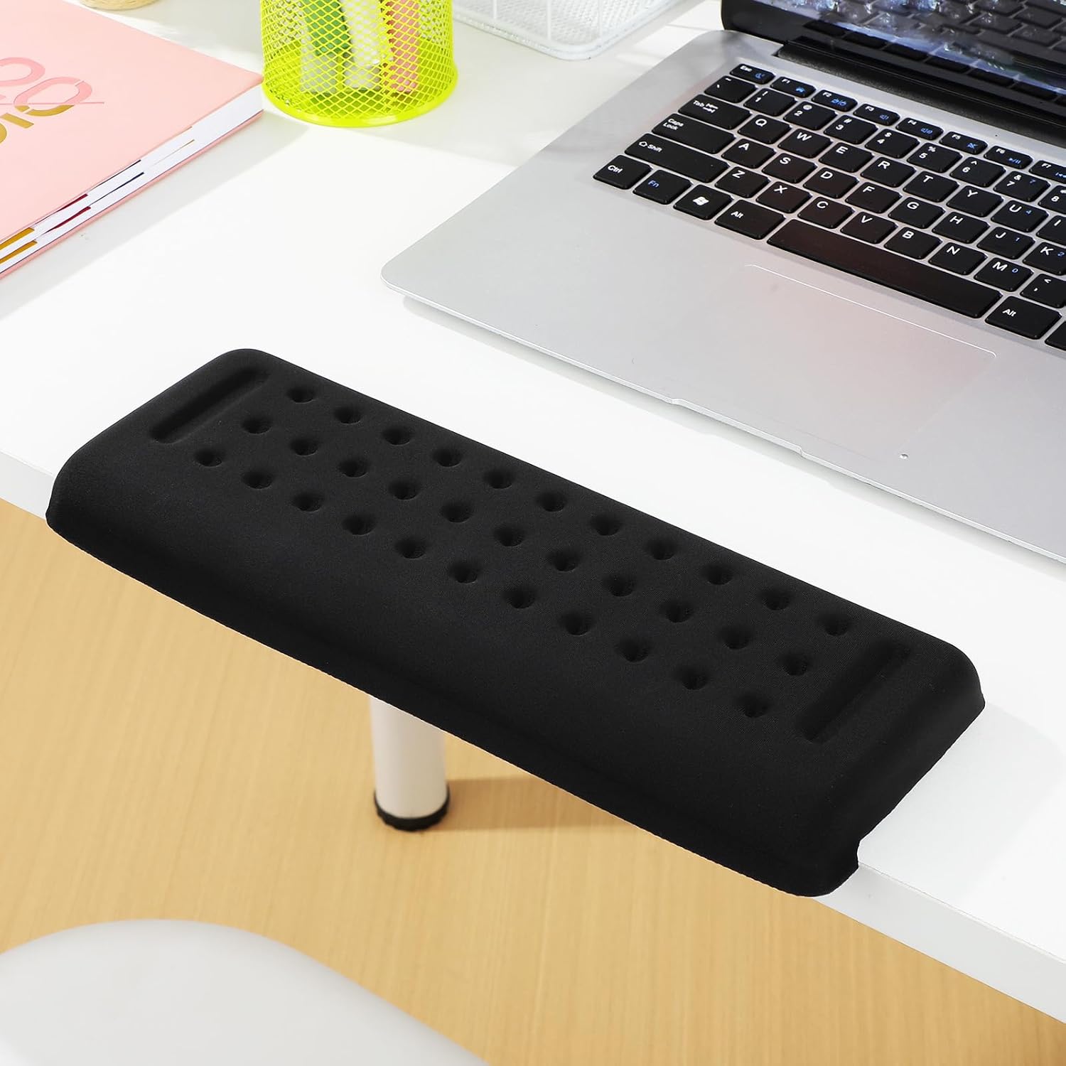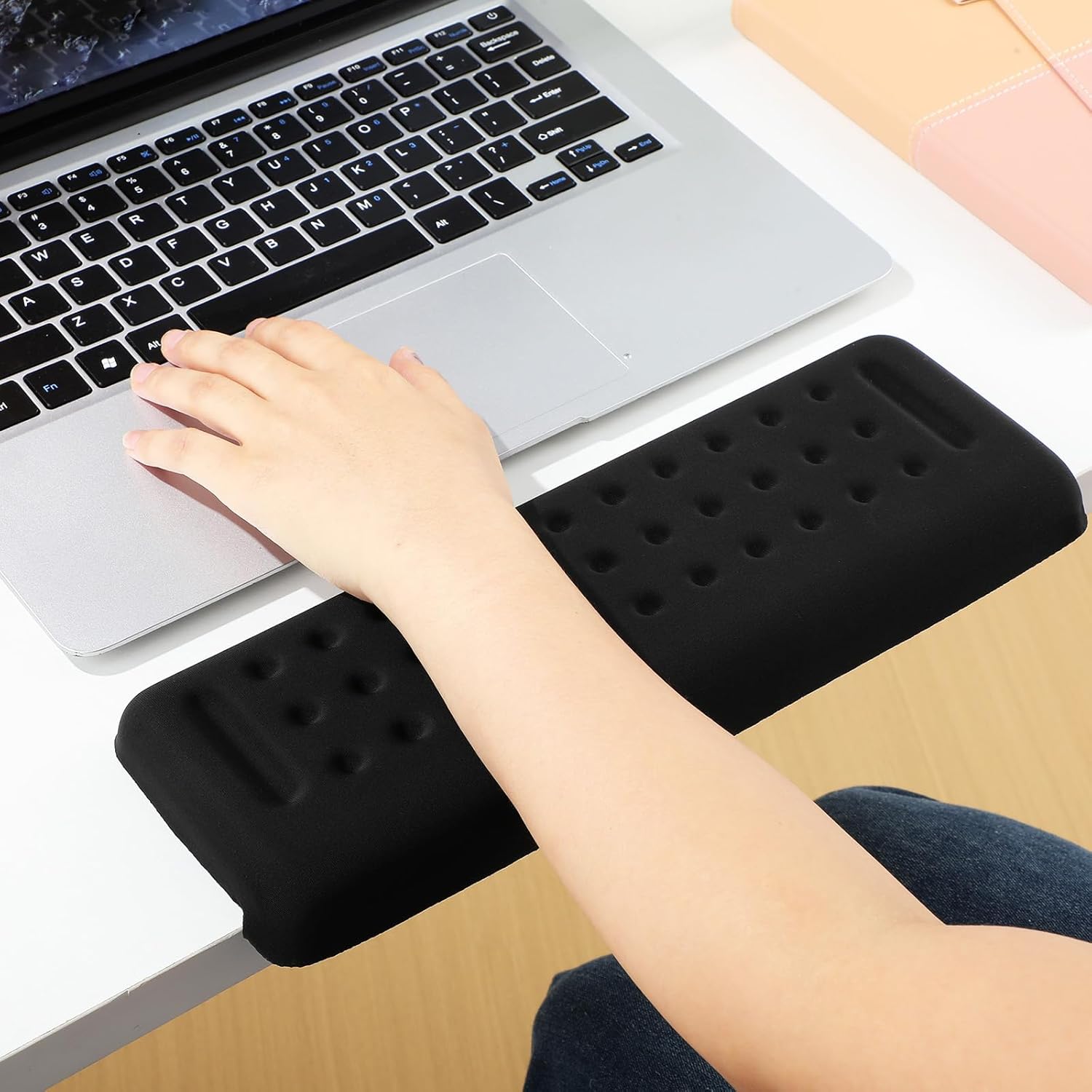 Description This L-shaped desk edge cushion is designed to provide ergonomic comfort and stability during long hours of desk work. Its sleek design fits seamlessly onto the edge of your desk, providing a comfortable resting surface for your arms and wrists. Ideal for home offices, gaming setups, or professional workstations, it enhances productivity by reducing strain. Features -Color:Black -Material:Cloth, memory foam -Size:30.00X10.00X2.50cm/11.79X3.93X0.98in -Modern design appeal: features a sleek and minimalist design that complements various office and home settings, adding a touch of modern elegance to your workspace -Firm construction: this desk extender is made of firm materials, allowing lasting durability and stability for everyday use in both personal and professional environments -Spacesaving solution: includes two desk edge supports, providing additional storage space for organizing office supplies or personal items without cluttering your desk -Comfortable usage: the desk edge cushion is thoughtfully crafted with smooth edges and ergonomic design, providing a comfortable experience during extended work or gaming sessions -Versatile application: suitable for a wide range of uses, from home offices to gaming setups, making it a practical addition to any workstation- Color: Black.- Size: 30.00X10.00X2.50CM.Package Including2 x desk elbow pads